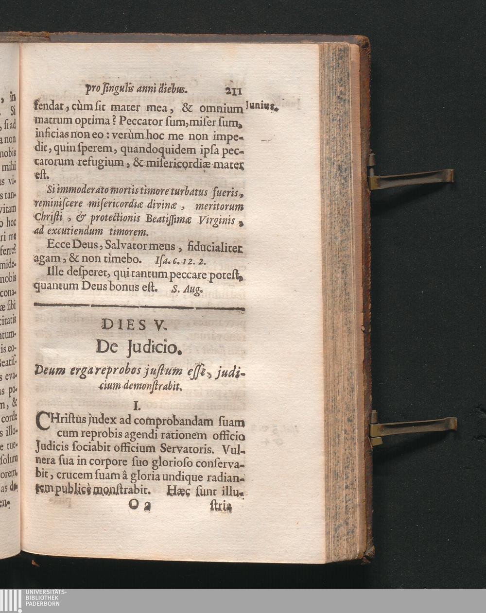 Dies 5. De Judicio. Deum erga reprobos justum esse, judicium demonstrabit.