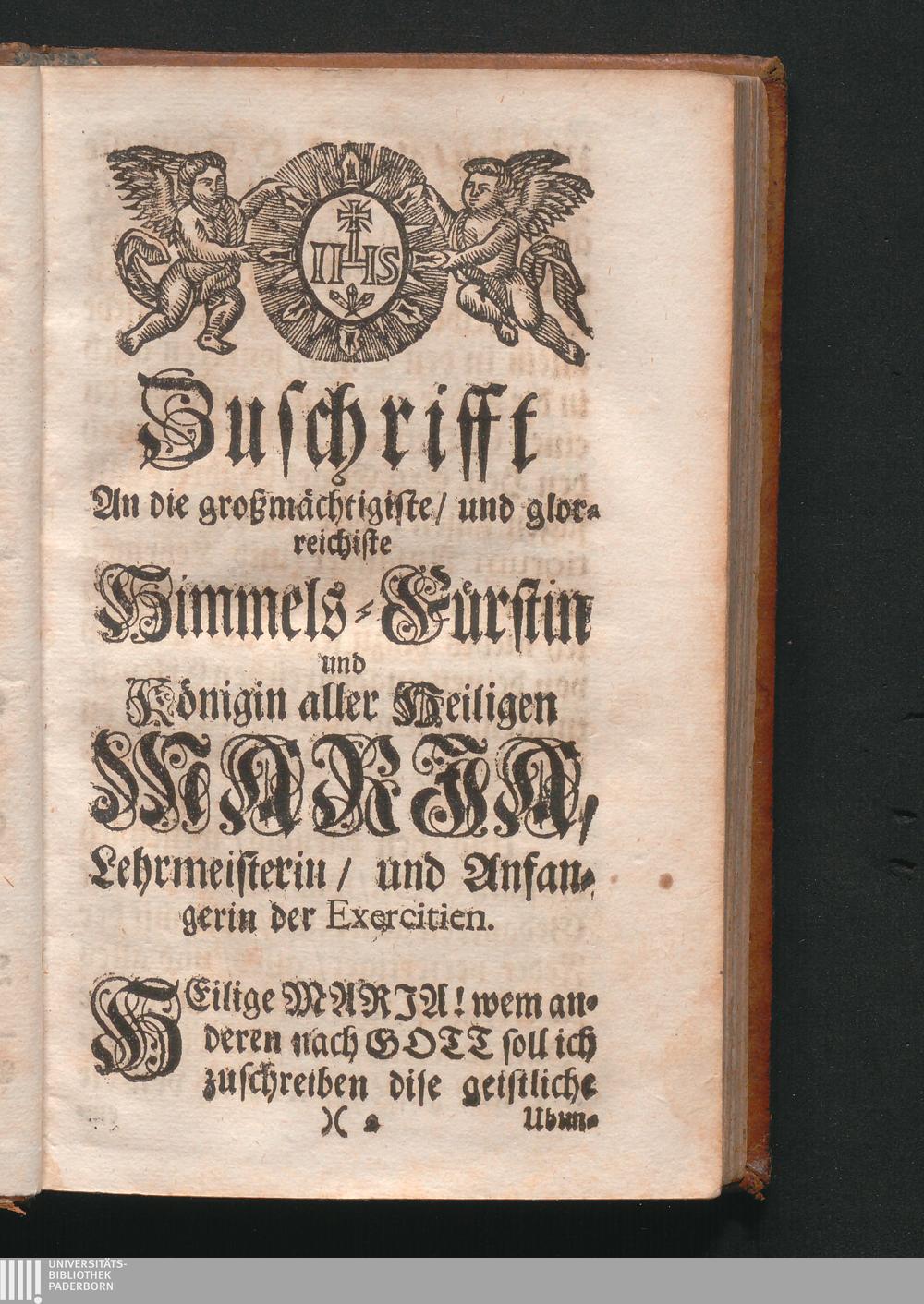 Zuschrifft An die großmächtigste/ und glorreichiste Himmels-Fürstin und Königin aller[...]