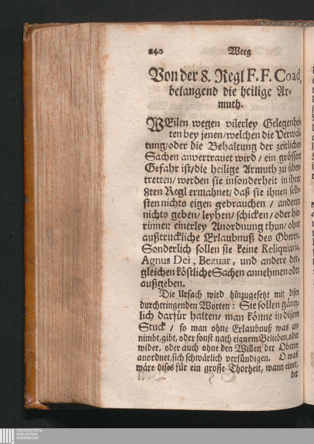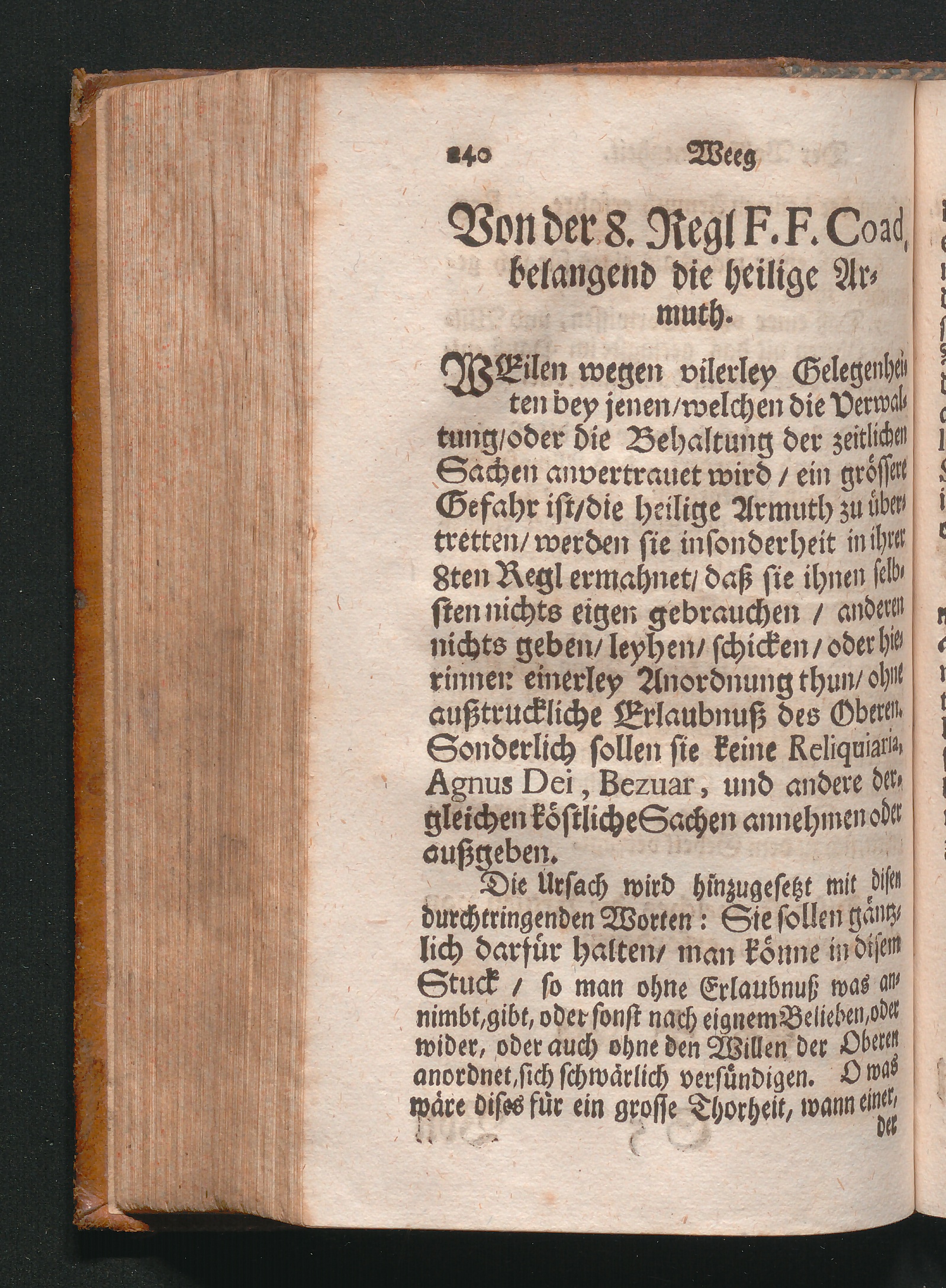 Von der 8. Regl F.F. Coad. belangend die heilige Armuth.