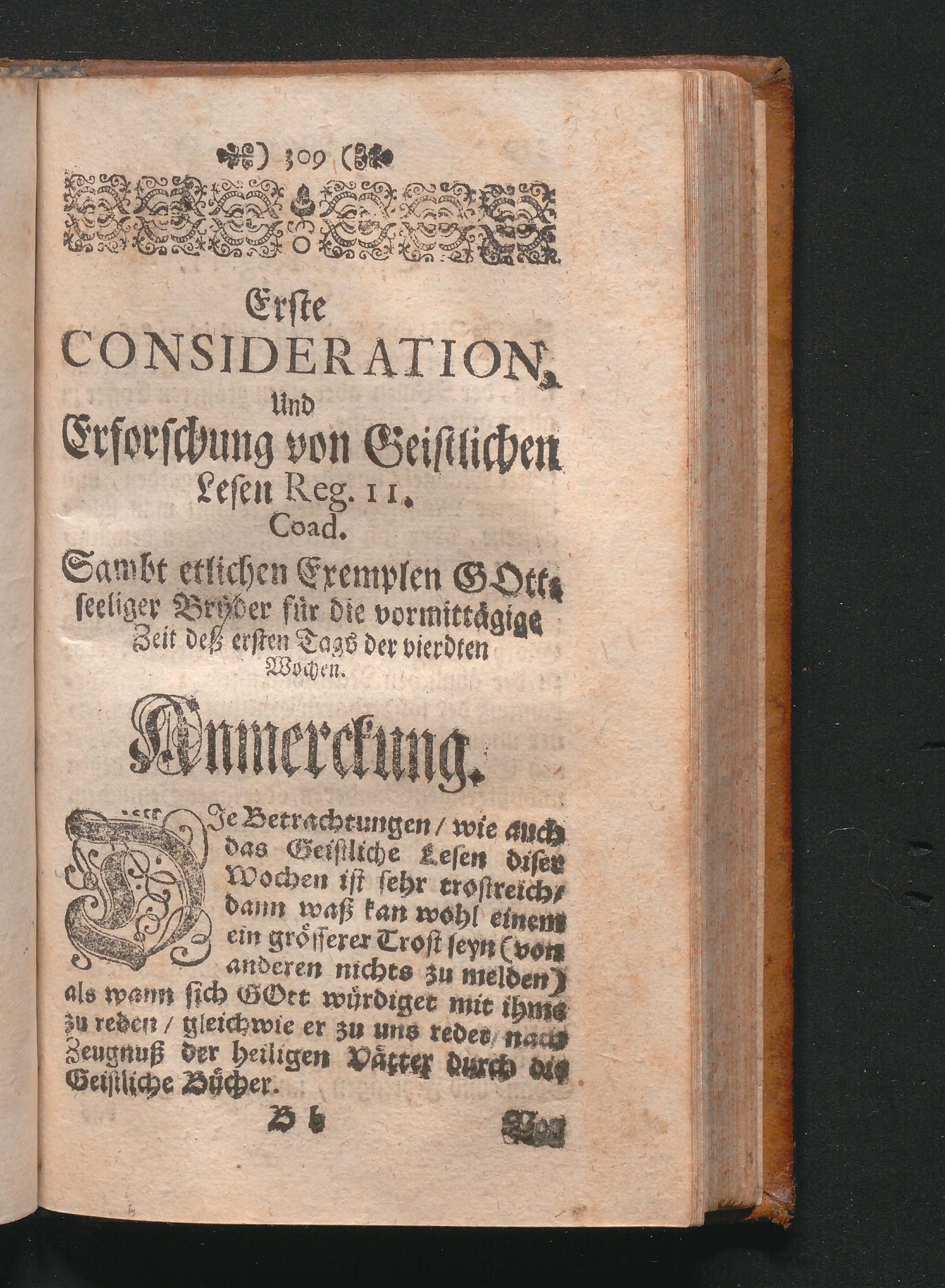 Erste Consideration, Und Erforschung von Geistlichen Lesen Reg. 11. Coad. Sambt etlichen[...]