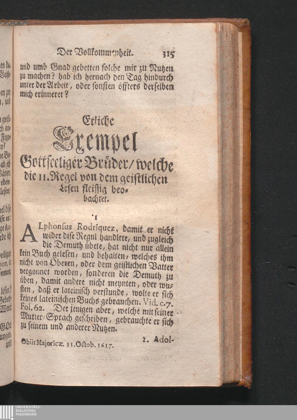 Etliche Exempel Gottseeliger Brüder/ welche die II. Regel von dem geistlichen Lesen[...]