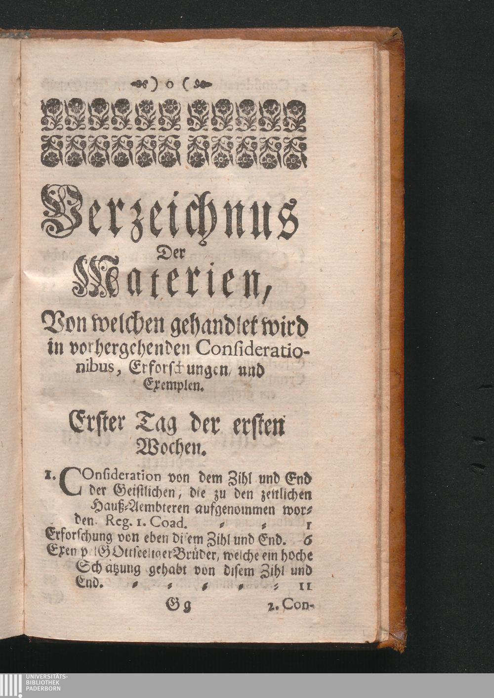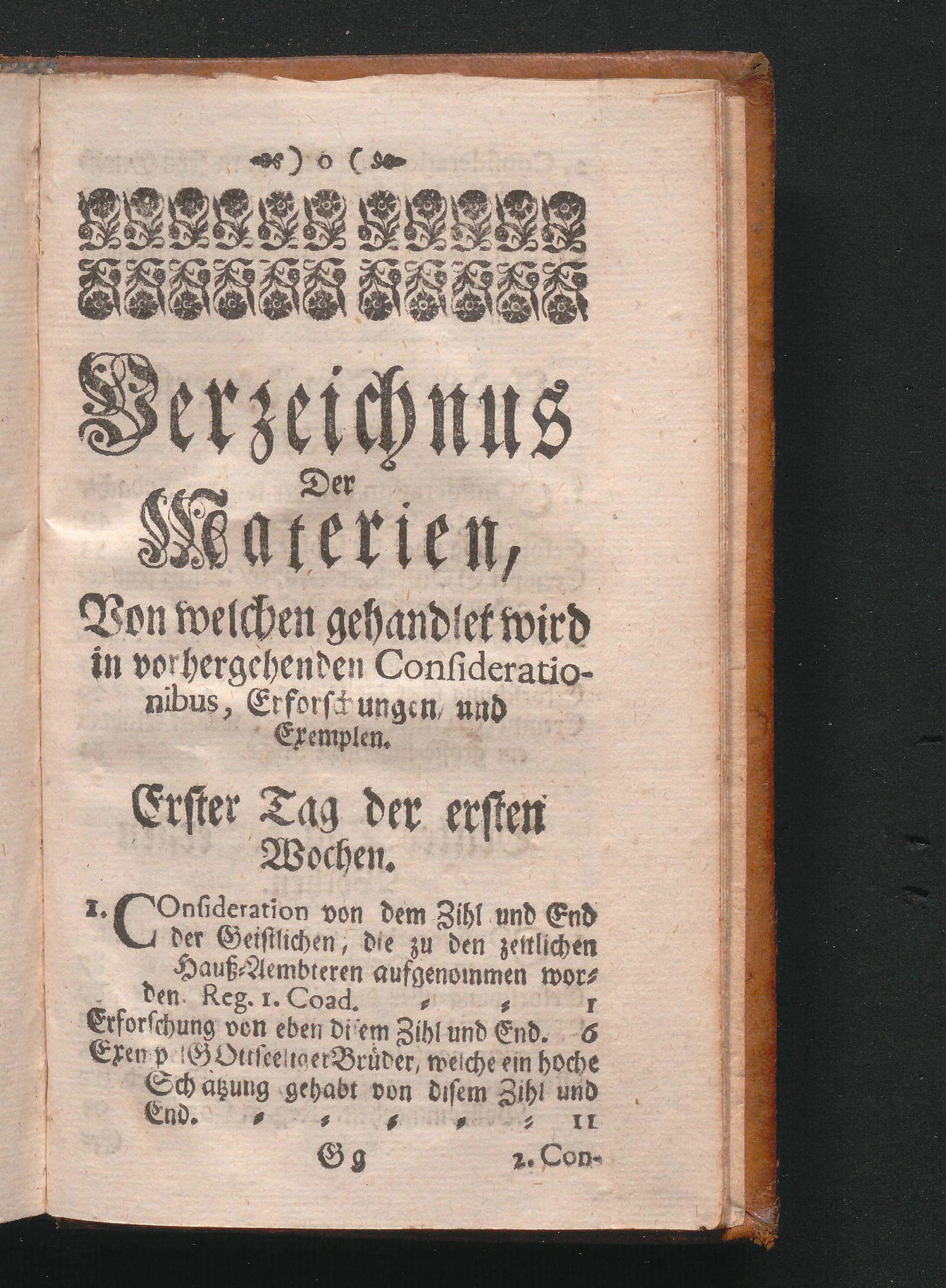 Verzeichnus Der Materien, Von welchen gehandlet wird in vorgehenden Considerationibus,[...]