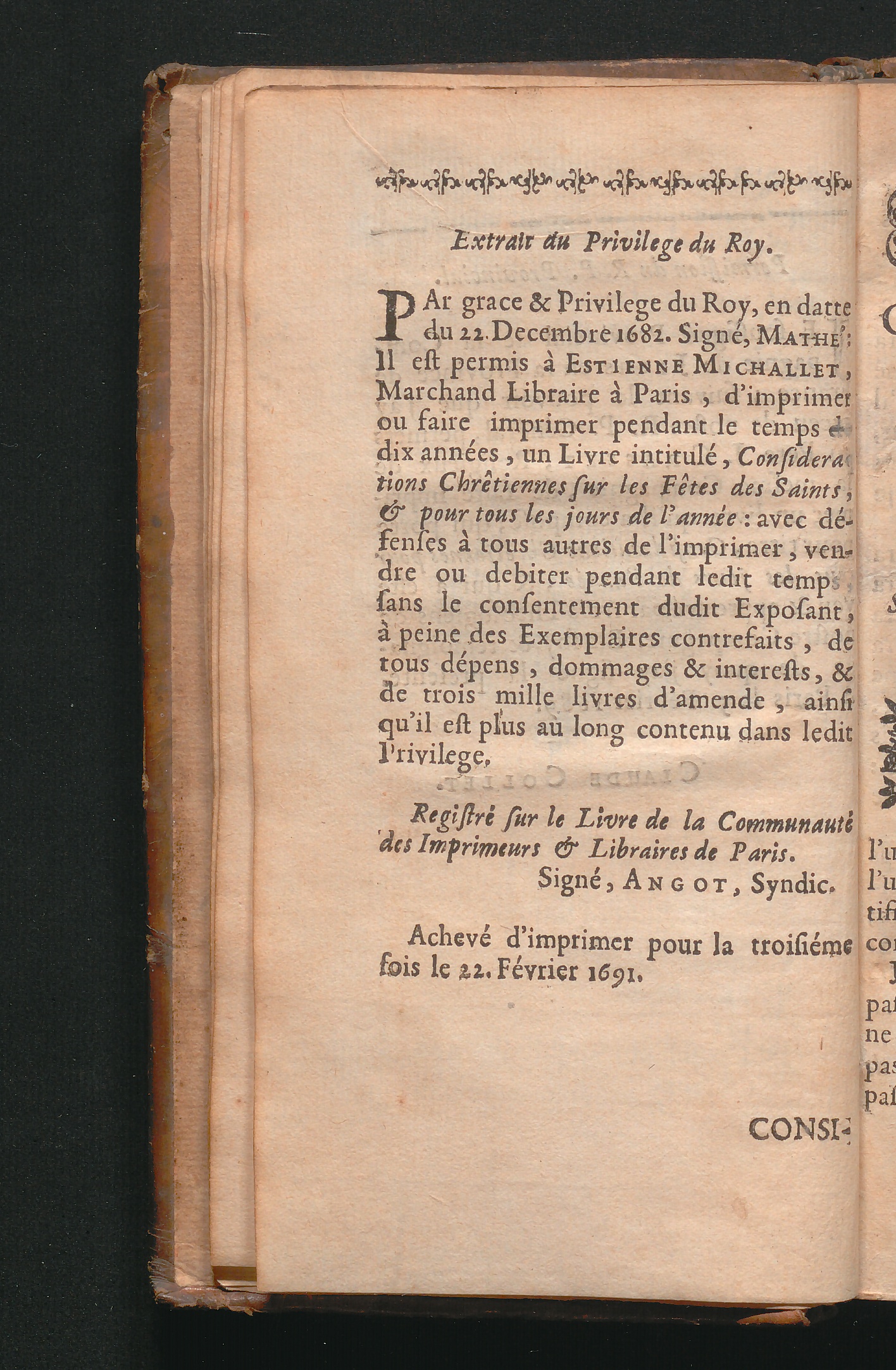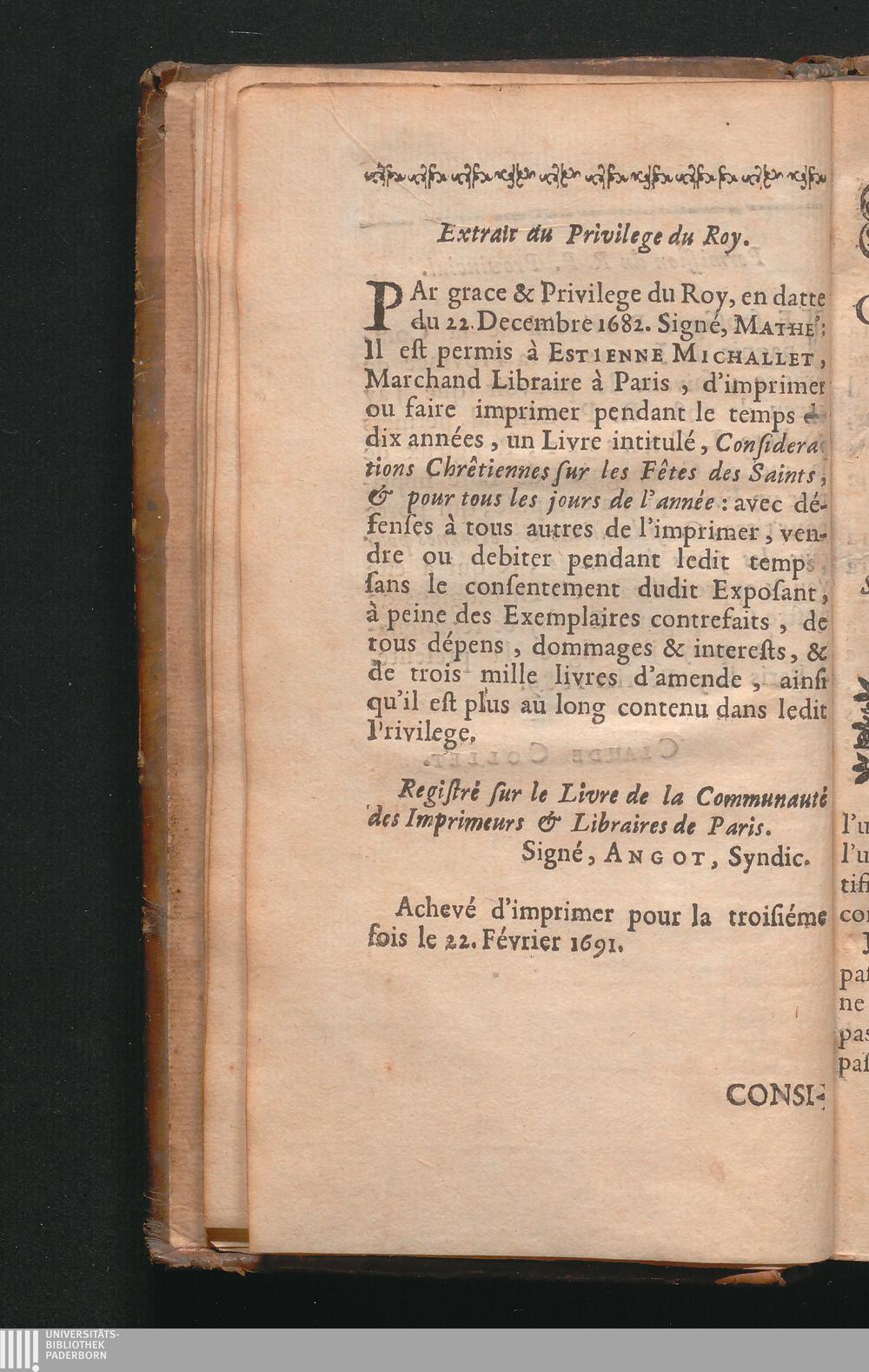 Extrait du Privilege du Roy.