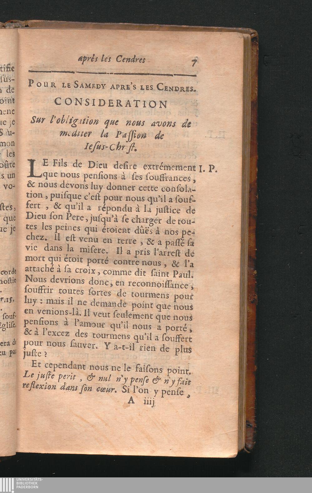 Samedy. L'obligation que nous avons de mediter la Passionde Jesus-Christ.
