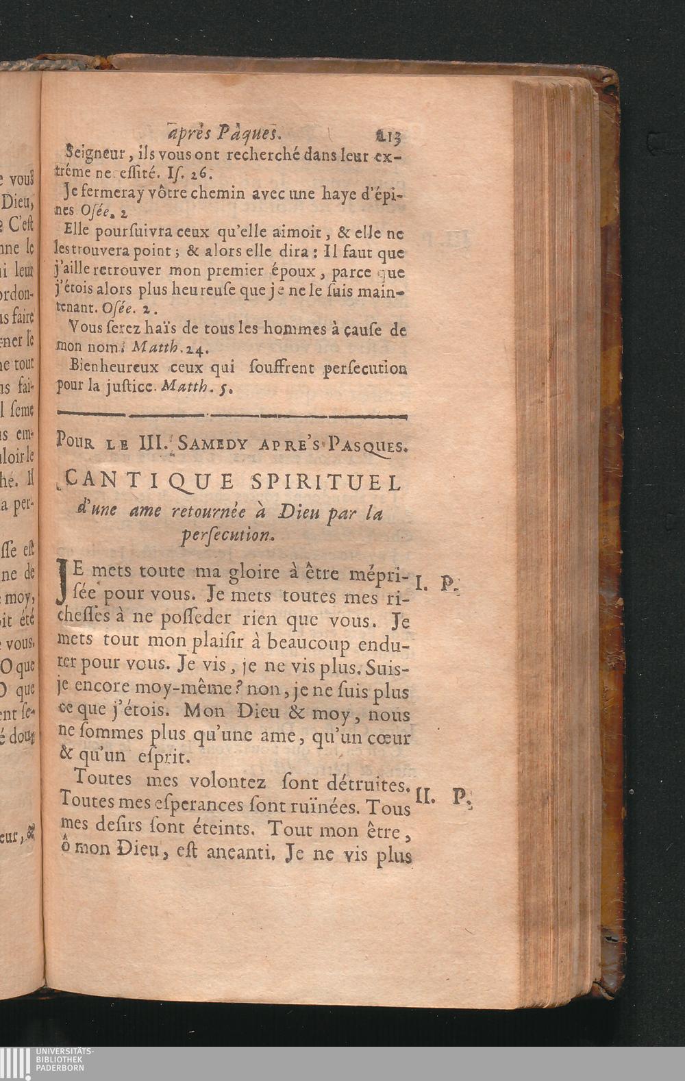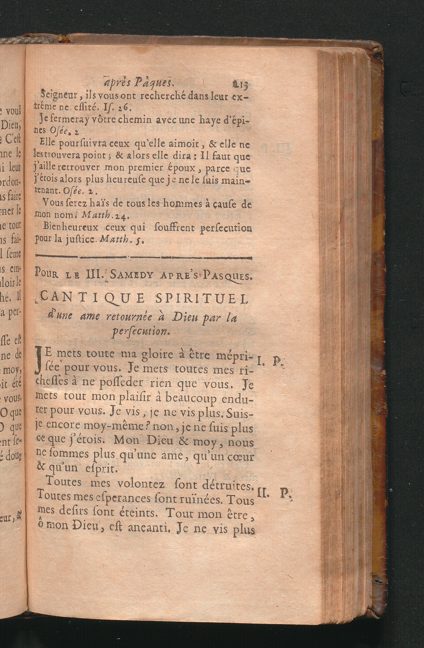 Samedy. Cantique spirituel d'une ame retournée à Dieu par la persecution.
