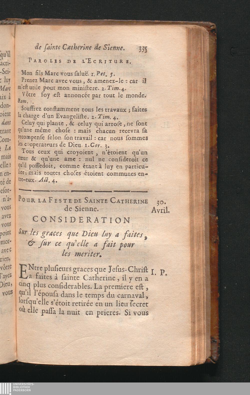 Table des Considerations Sur les Fêtes des Saints contenuës en ce second Tome.