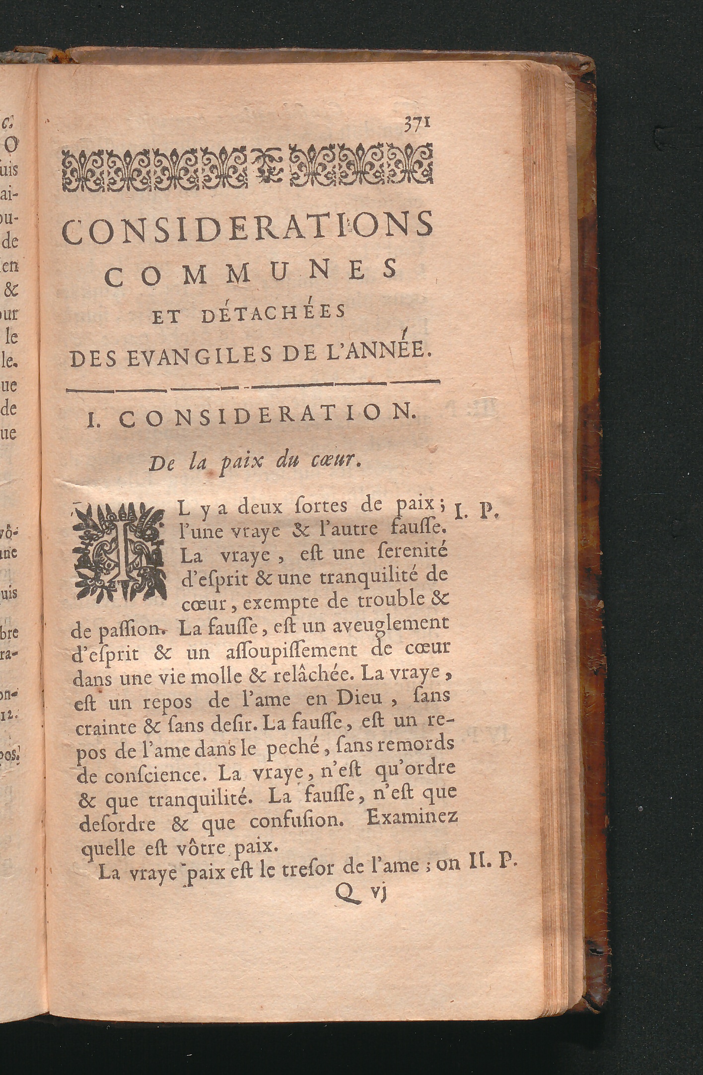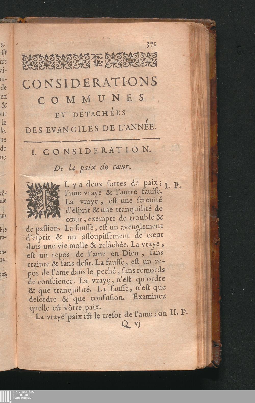 I. Consideration. De la paix du cœur.