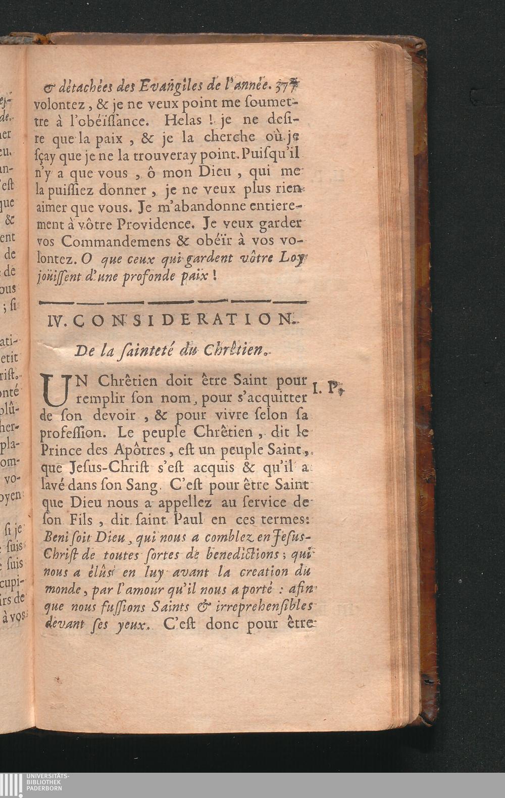 IV. Considerat. De la sainteté du Chrêtien.