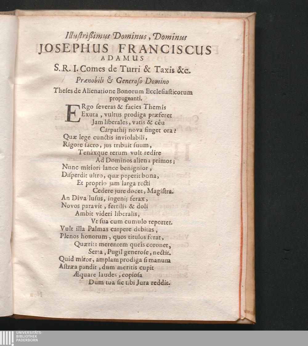 Alienatio Canonica Rerum Ecclesiae Temporalium / Quam In Alma & Electorali Universitate Ingolstadiensi ... a P. Jacobo Wiestner S.J. ... Explicatam ... D.nus Bernardus Franciscus Prielmeyer de Priel ... Cum Positionibus Ex Iure Ecclesiastico Universo selectis Publicae Disputationi proposuit. Pridie Calend. Martii Anno M.DC.XCII.