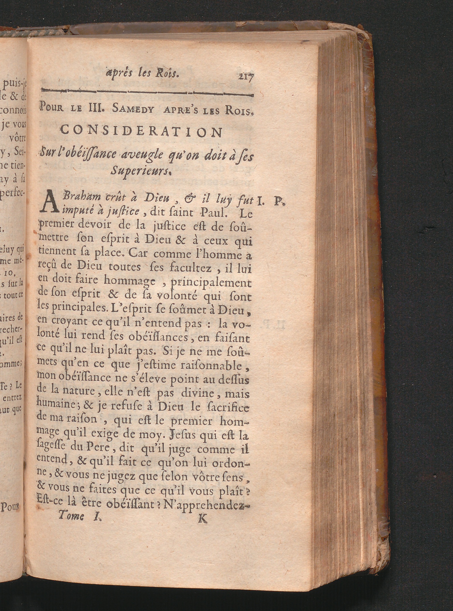 Samedy. Sur l'obéïssance dûë aux Superieurs.