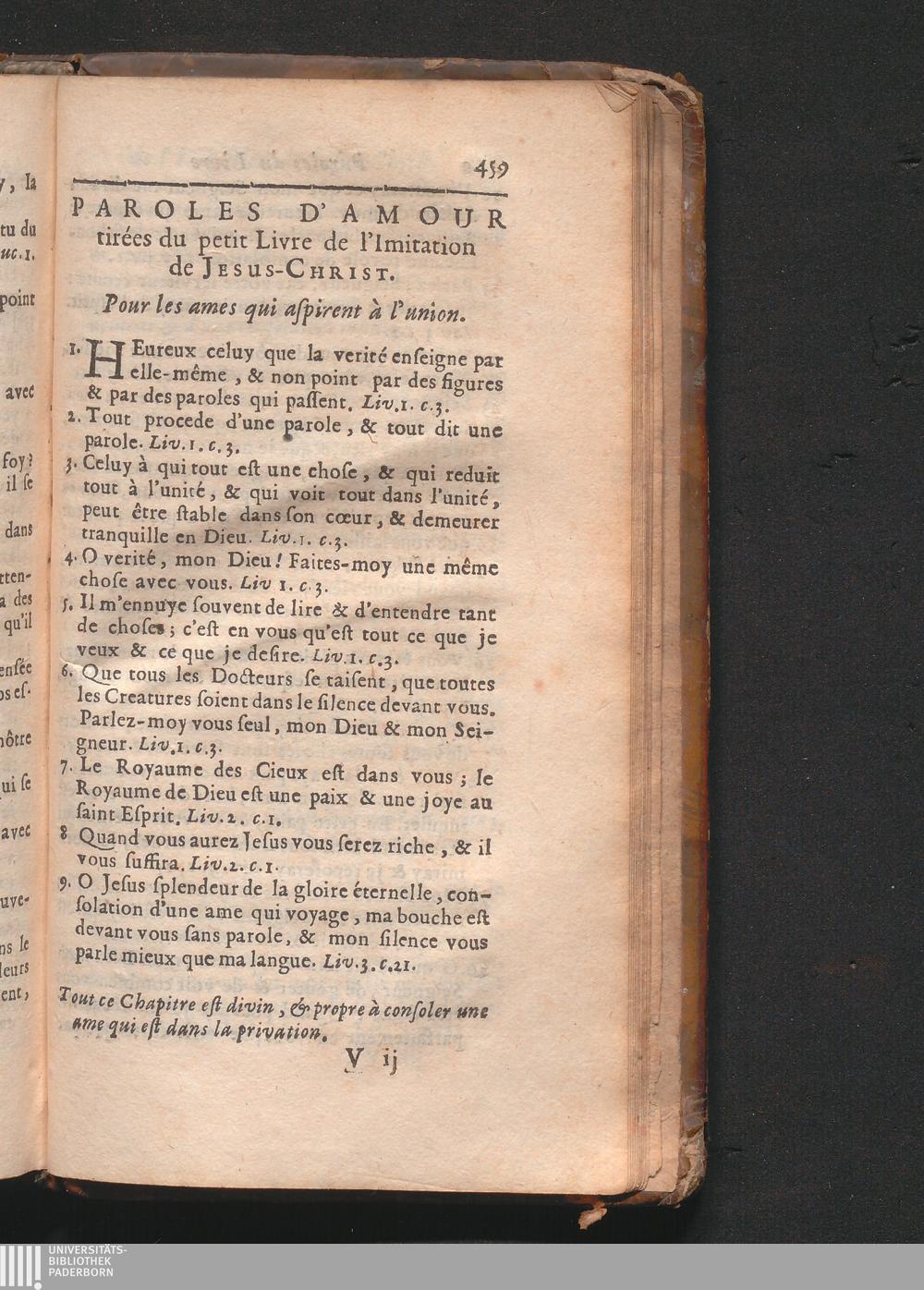 Paroles D'Amour tirées du petit Livre de l'Imitation de Jesus-Christ.