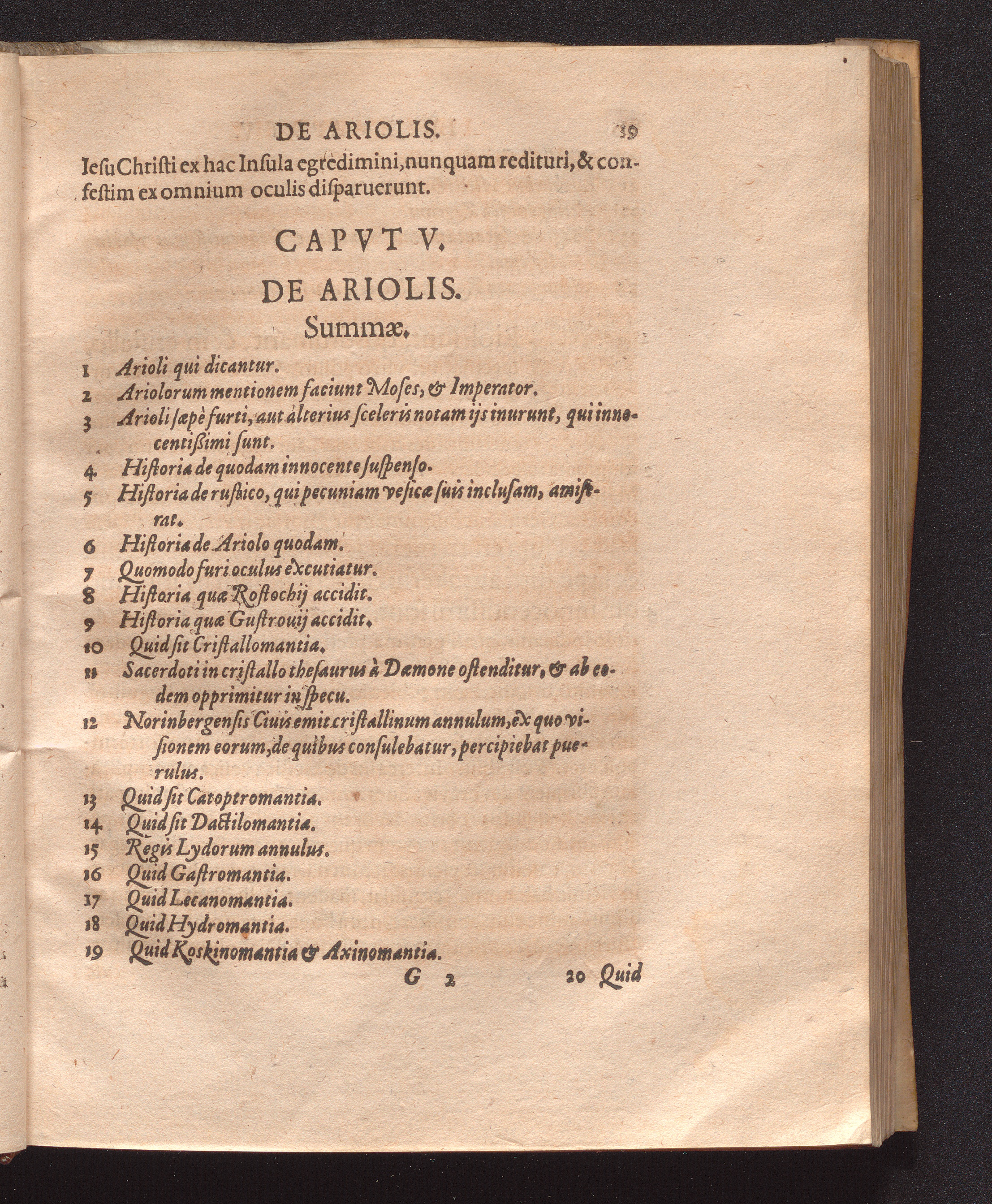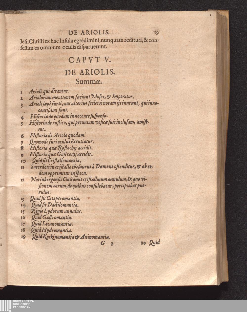 Capvt V. De Ariolis.