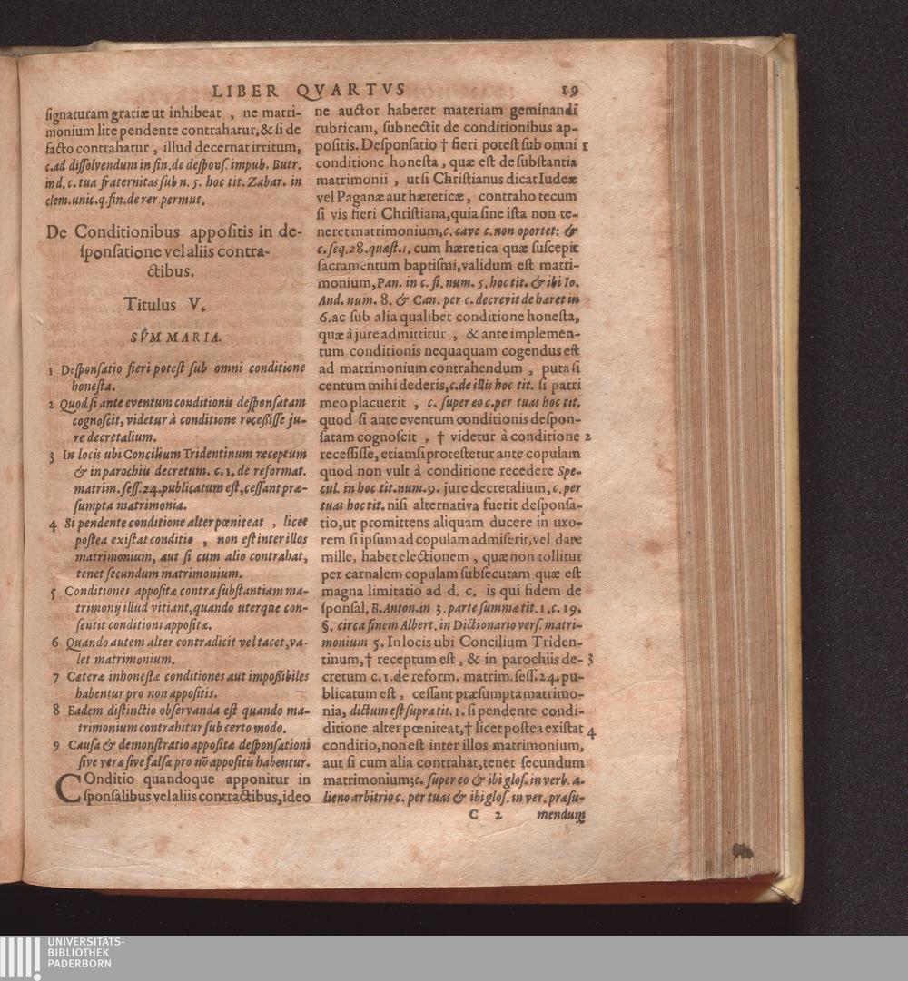 De Conditionibus appositis in desponsatione vel aliis contractibus. Titulus V.