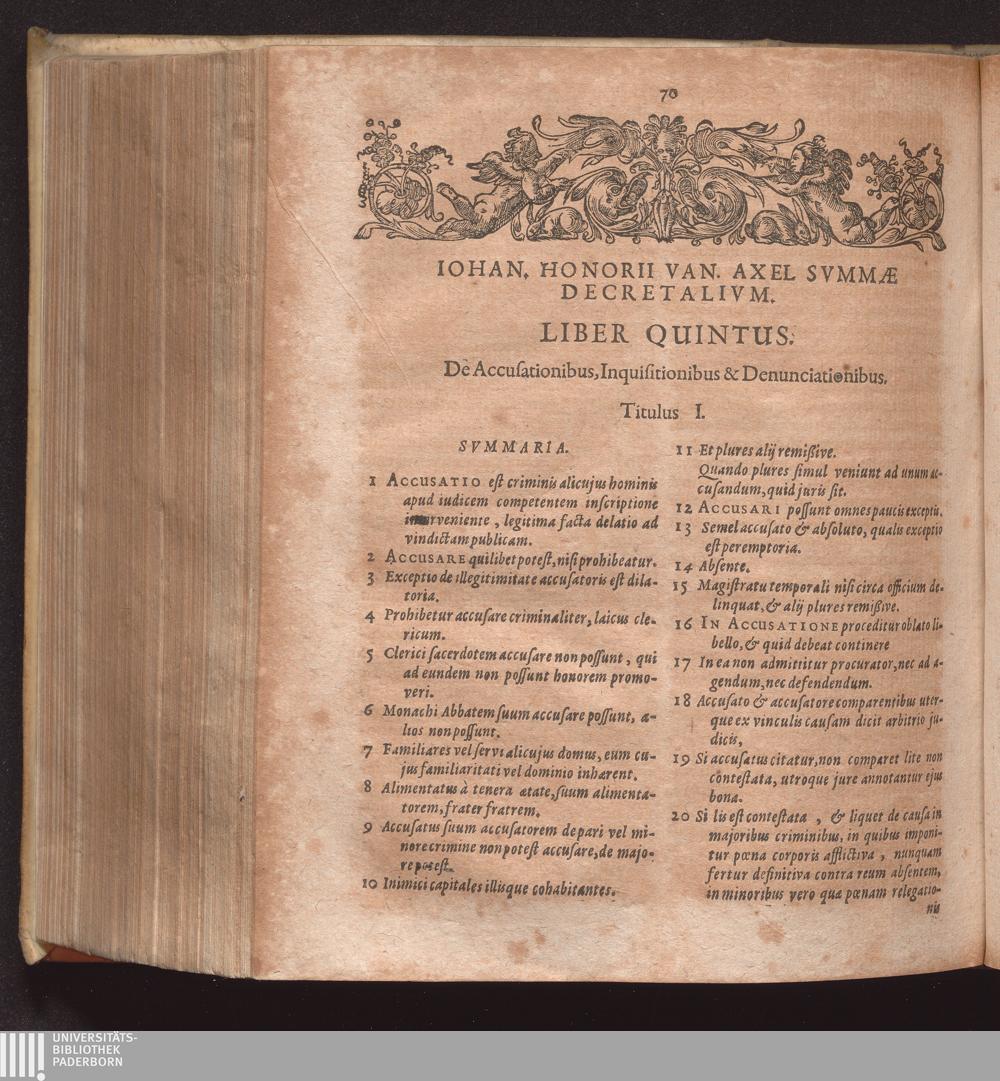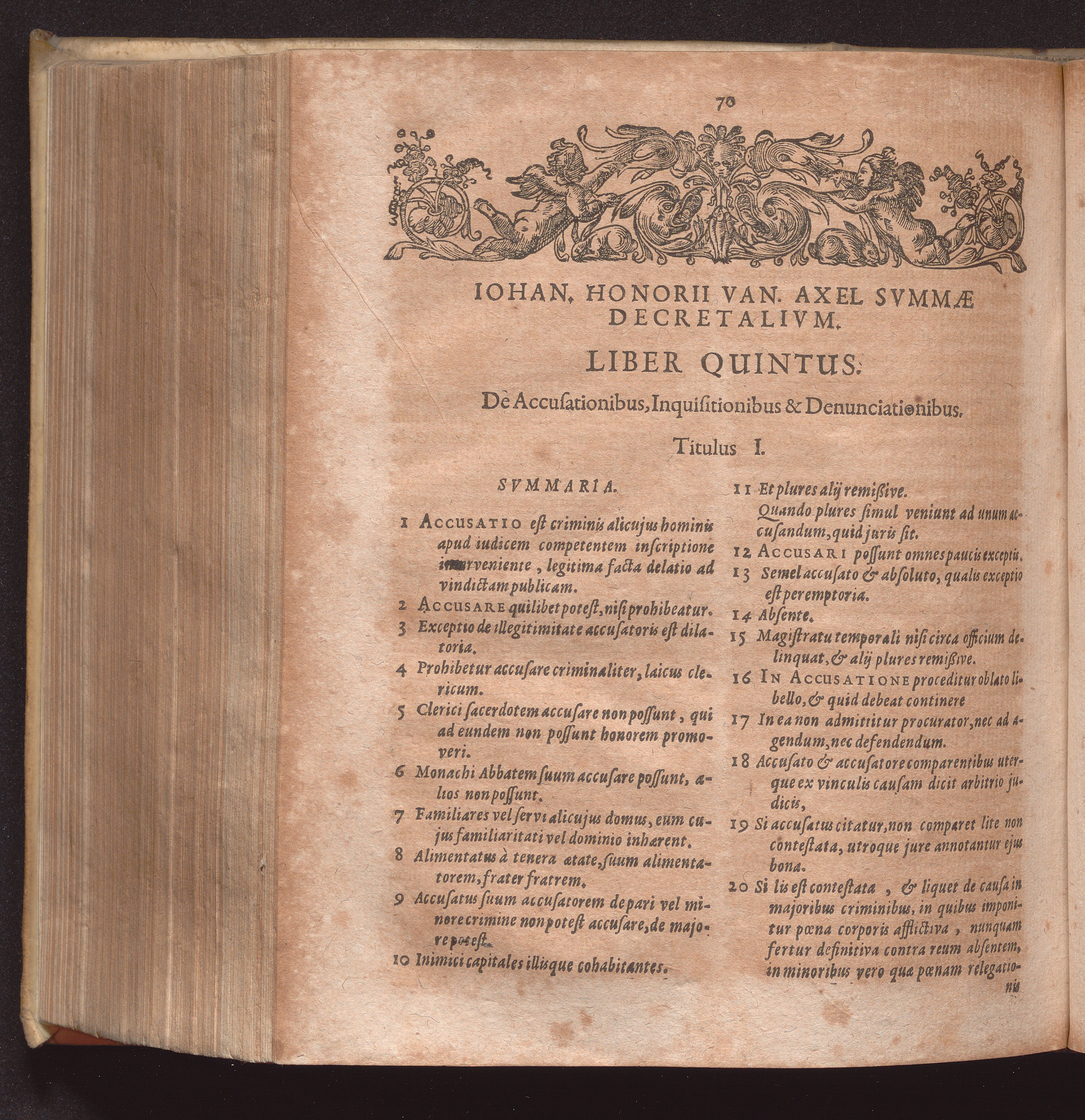 Iohan. Honorii Van. Axel Svmmæ Decretalivm. Liber Quintus.