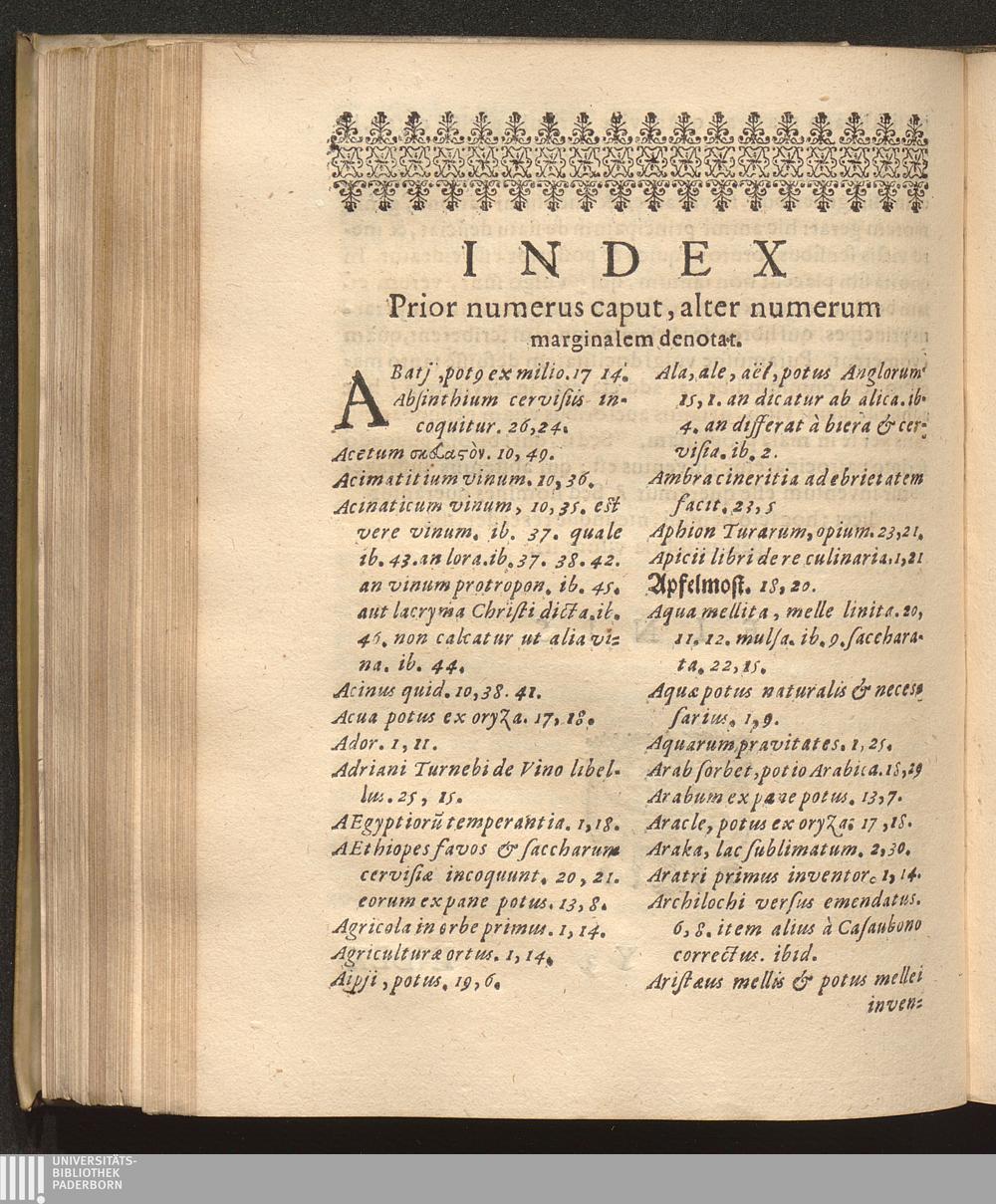 Index. Prior numerus caput, alter numerum marginalem denotat.