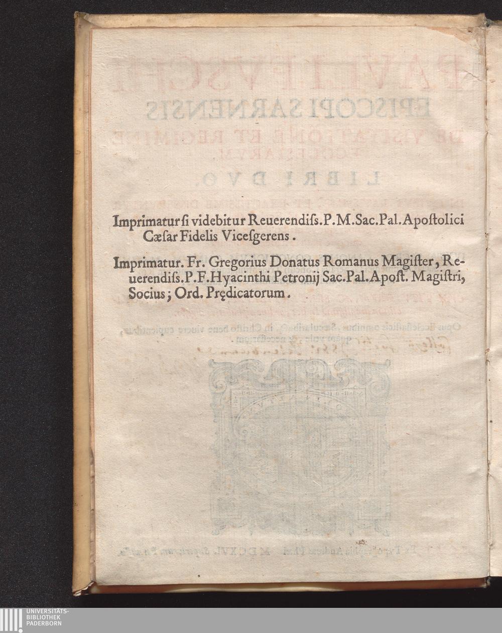 Pavli Fvschi Episcopi Sarnensis De Visitatione Et Regimine Ecclesiarvm. Libri Dvo : In Quibvs Latissime, et Exactissime Disservntvr suo ordine, quae sint necessaria ad Ecclesias visitandas, easq. quàm optimè regendas, quovè modo Prælati, & Subditi in vnoquoque statu se habere debeant, Ivxta Sacros Canones Conciliorvm Omnivm, Maxime Sacri Oecumenici Generalis Concilij Tridentini, atque Summorum Romanorum Pontificum nouissimas Constitutuones ...