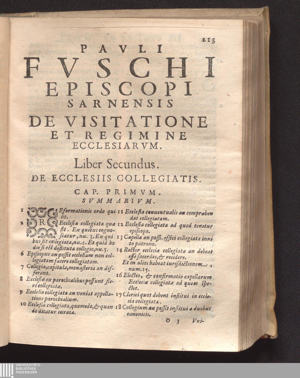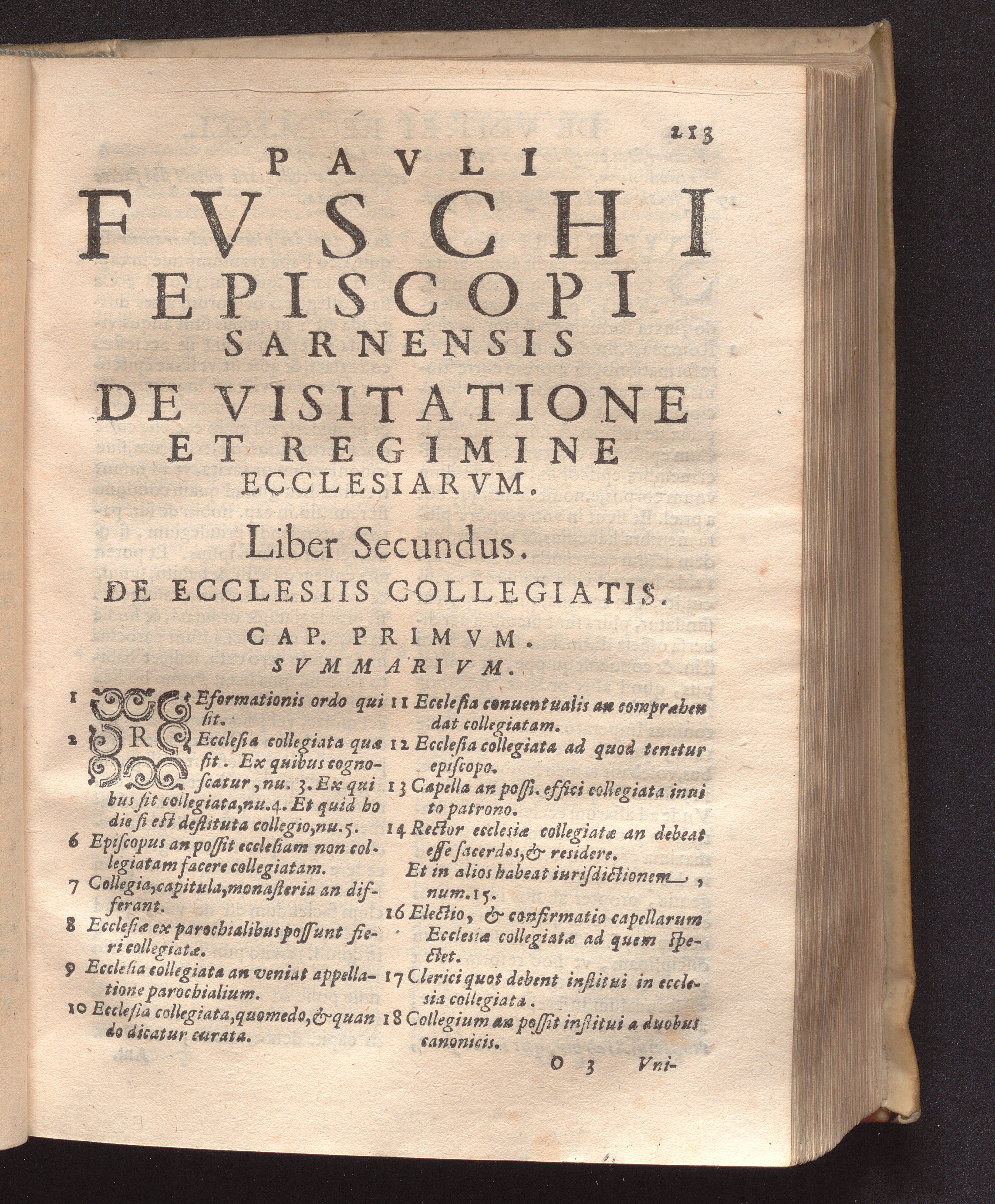 Pavli Fvschi Episcopi Sarnensis De Visitatione Et Regimine Ecclesiarvm. Libri Dvo : In Quibvs Latissime, et Exactissime Disservntvr suo ordine, quae sint necessaria ad Ecclesias visitandas, easq. quàm optimè regendas, quovè modo Prælati, & Subditi in vnoquoque statu se habere debeant, Ivxta Sacros Canones Conciliorvm Omnivm, Maxime Sacri Oecumenici Generalis Concilij Tridentini, atque Summorum Romanorum Pontificum nouissimas Constitutuones ...