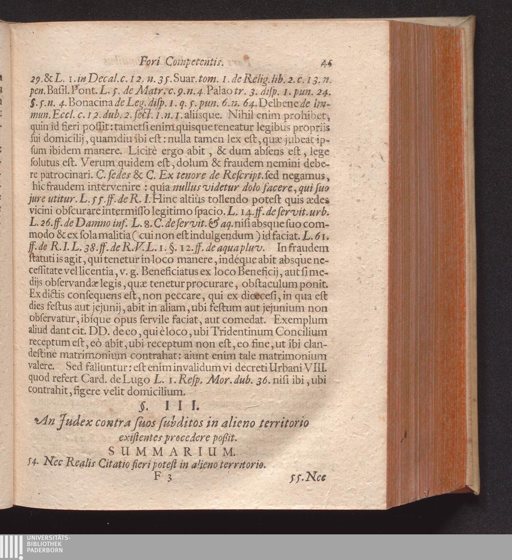 Forum Competens Quæstionibus ex Universo Jure selectis, atque ad praxin utilissimis illustratum, Seu Tractatus Canonico-Civilis : In quo Primùm quidem de Foro in genere: dein verò de Ordinario, eóque tum Communi Domicilij, Contractûs, Delicti, reíque sitæ; tum etiam singulari, quod certis Personis privilegiatis competit; uti etiam de Extraordinario Prorogationis, Delegationis, Connexionis, seu Continentiæ Causarum, & Reconventionis: ac demum etiam de Causis, quæ privativè ad Forum vel Seculare, vel Ecclesiasticum pertinent, vel cumulativè ad utrumque, accuratè disputatur / Auctore P. Melchiore Friderich Societatis Jesu Sacerdote, & SS. Canonum in Universitate Ingolstadiana Professore
