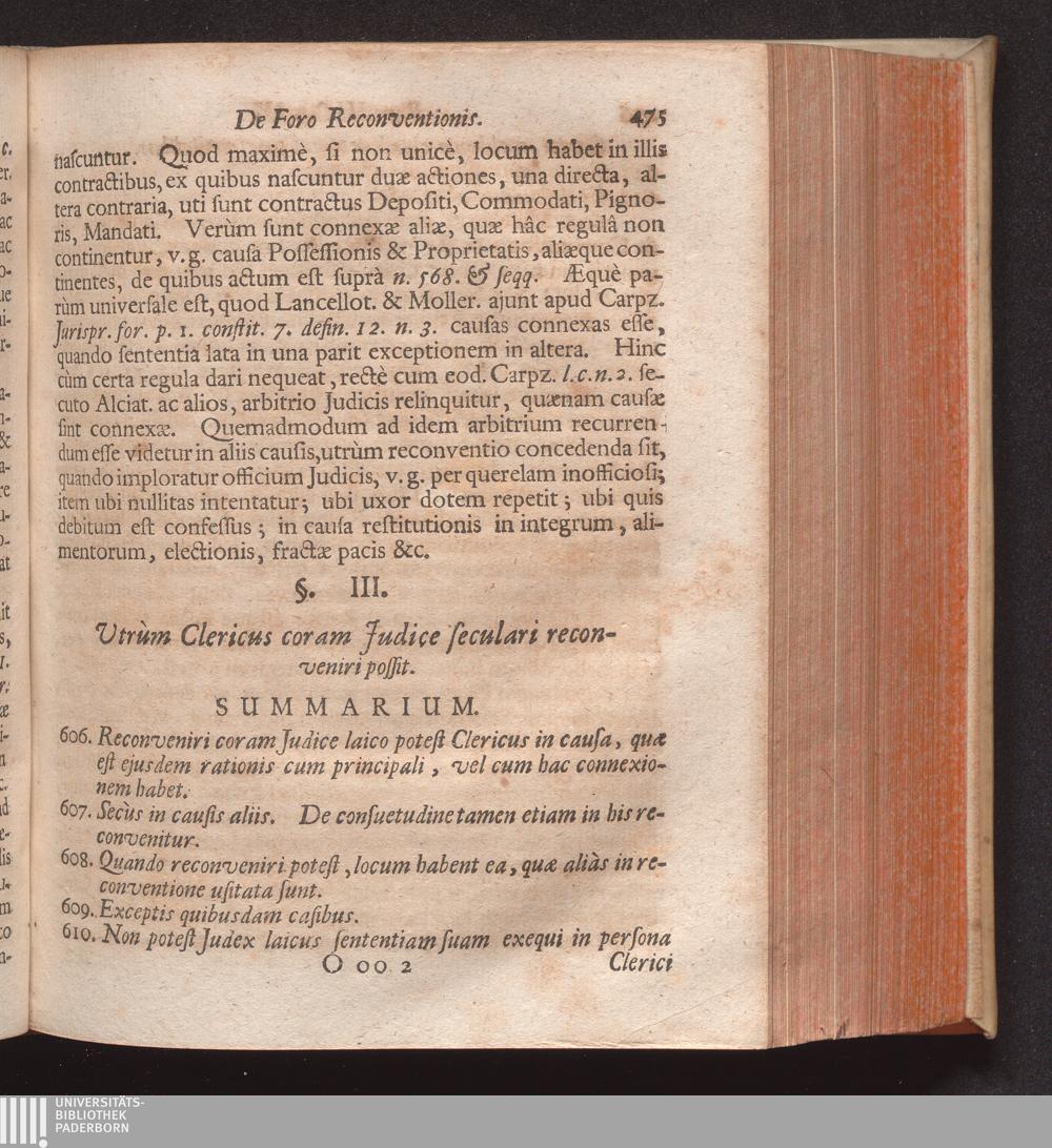 Forum Competens Quæstionibus ex Universo Jure selectis, atque ad praxin utilissimis illustratum, Seu Tractatus Canonico-Civilis : In quo Primùm quidem de Foro in genere: dein verò de Ordinario, eóque tum Communi Domicilij, Contractûs, Delicti, reíque sitæ; tum etiam singulari, quod certis Personis privilegiatis competit; uti etiam de Extraordinario Prorogationis, Delegationis, Connexionis, seu Continentiæ Causarum, & Reconventionis: ac demum etiam de Causis, quæ privativè ad Forum vel Seculare, vel Ecclesiasticum pertinent, vel cumulativè ad utrumque, accuratè disputatur / Auctore P. Melchiore Friderich Societatis Jesu Sacerdote, & SS. Canonum in Universitate Ingolstadiana Professore
