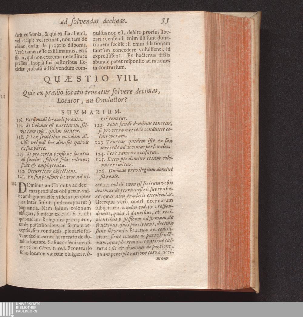 Quæstiones Canonicæ De Decimis : Quibus universum Jus decimandi, quà Ecclesijs, quà Laicis competens, Et Immunitas ab ijsdem solvendis, ex Jure cùm communi, tum consuetudinario, tum etiam Bavariæ Statutis, & Concordatis explicatur ; Accessit geminus Index, unus Quæstionum, alter Rerum & Verborum / Auctore P. Melchiore Friderich Societatis Jesu Sacerdote, & SS. Canonum in Universitate Ingolstadiana Professore