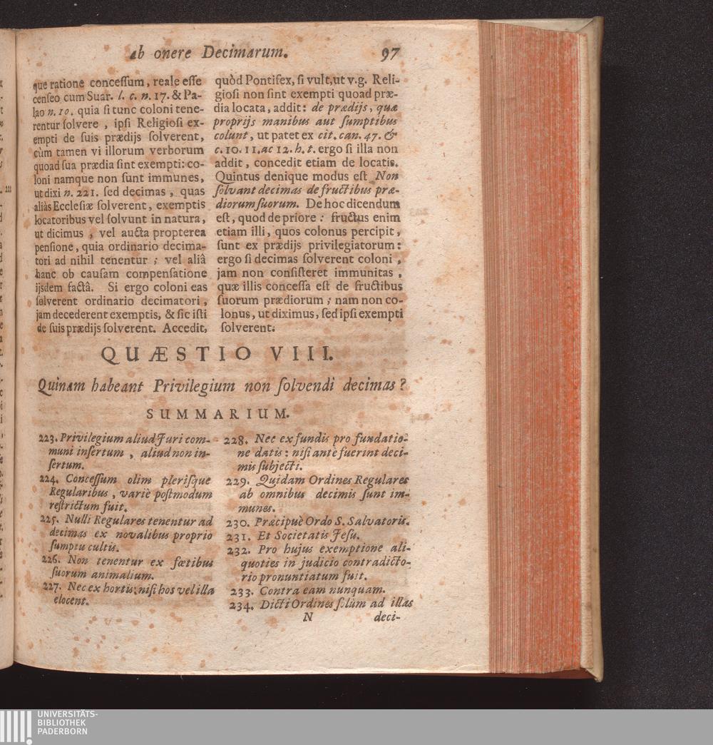 Quæstiones Canonicæ De Decimis : Quibus universum Jus decimandi, quà Ecclesijs, quà Laicis competens, Et Immunitas ab ijsdem solvendis, ex Jure cùm communi, tum consuetudinario, tum etiam Bavariæ Statutis, & Concordatis explicatur ; Accessit geminus Index, unus Quæstionum, alter Rerum & Verborum / Auctore P. Melchiore Friderich Societatis Jesu Sacerdote, & SS. Canonum in Universitate Ingolstadiana Professore
