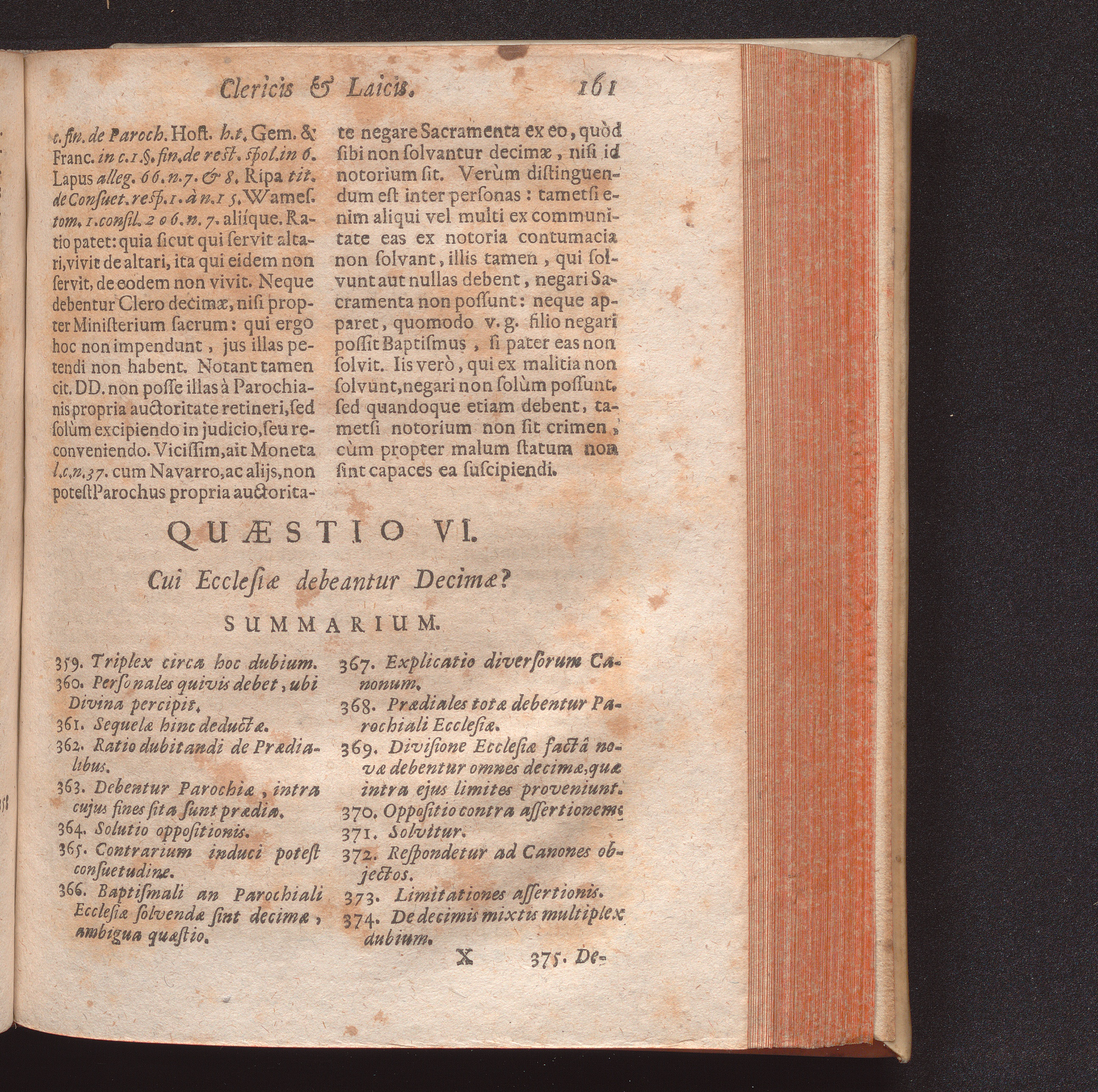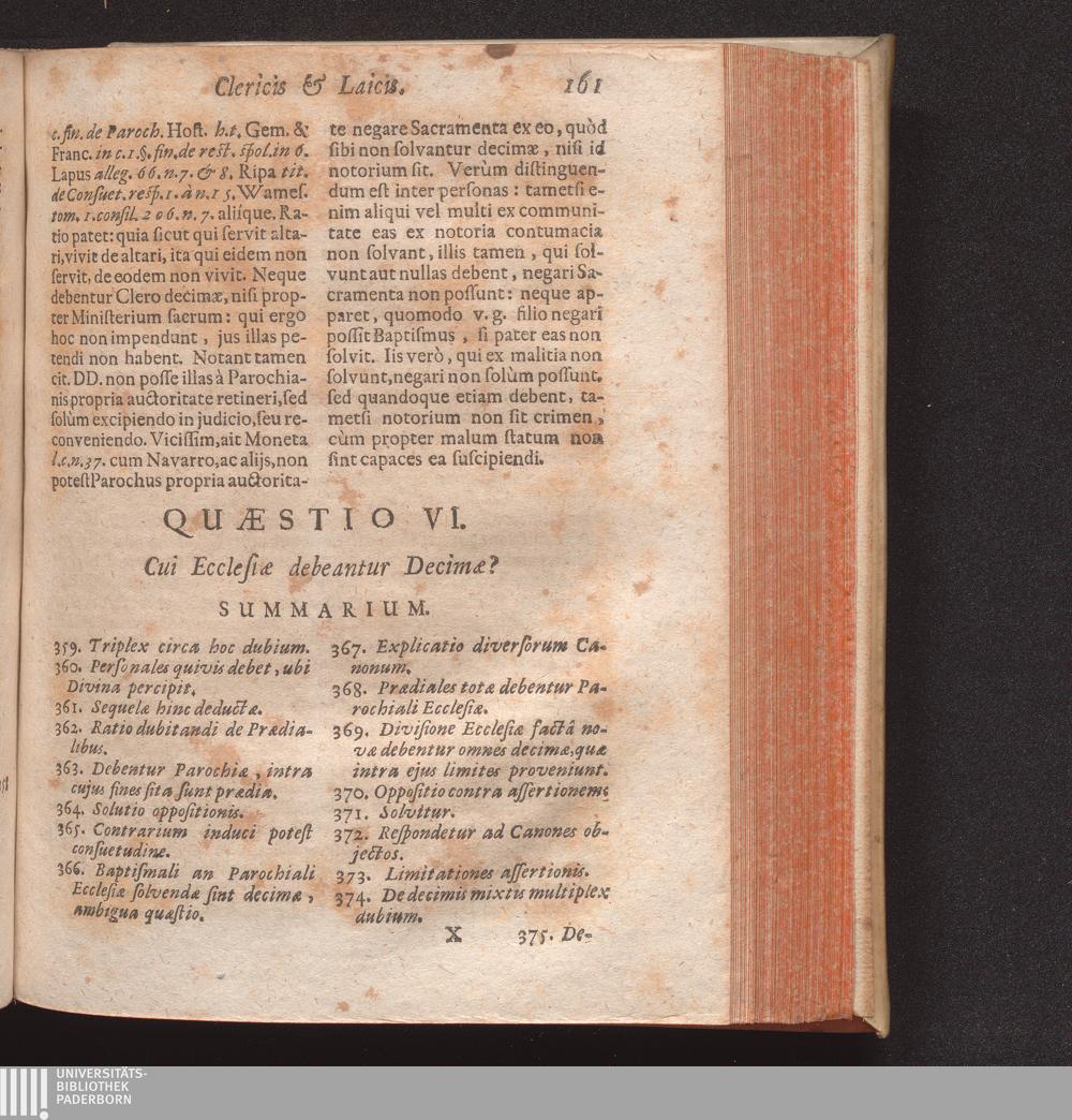 Quæstiones Canonicæ De Decimis : Quibus universum Jus decimandi, quà Ecclesijs, quà Laicis competens, Et Immunitas ab ijsdem solvendis, ex Jure cùm communi, tum consuetudinario, tum etiam Bavariæ Statutis, & Concordatis explicatur ; Accessit geminus Index, unus Quæstionum, alter Rerum & Verborum / Auctore P. Melchiore Friderich Societatis Jesu Sacerdote, & SS. Canonum in Universitate Ingolstadiana Professore