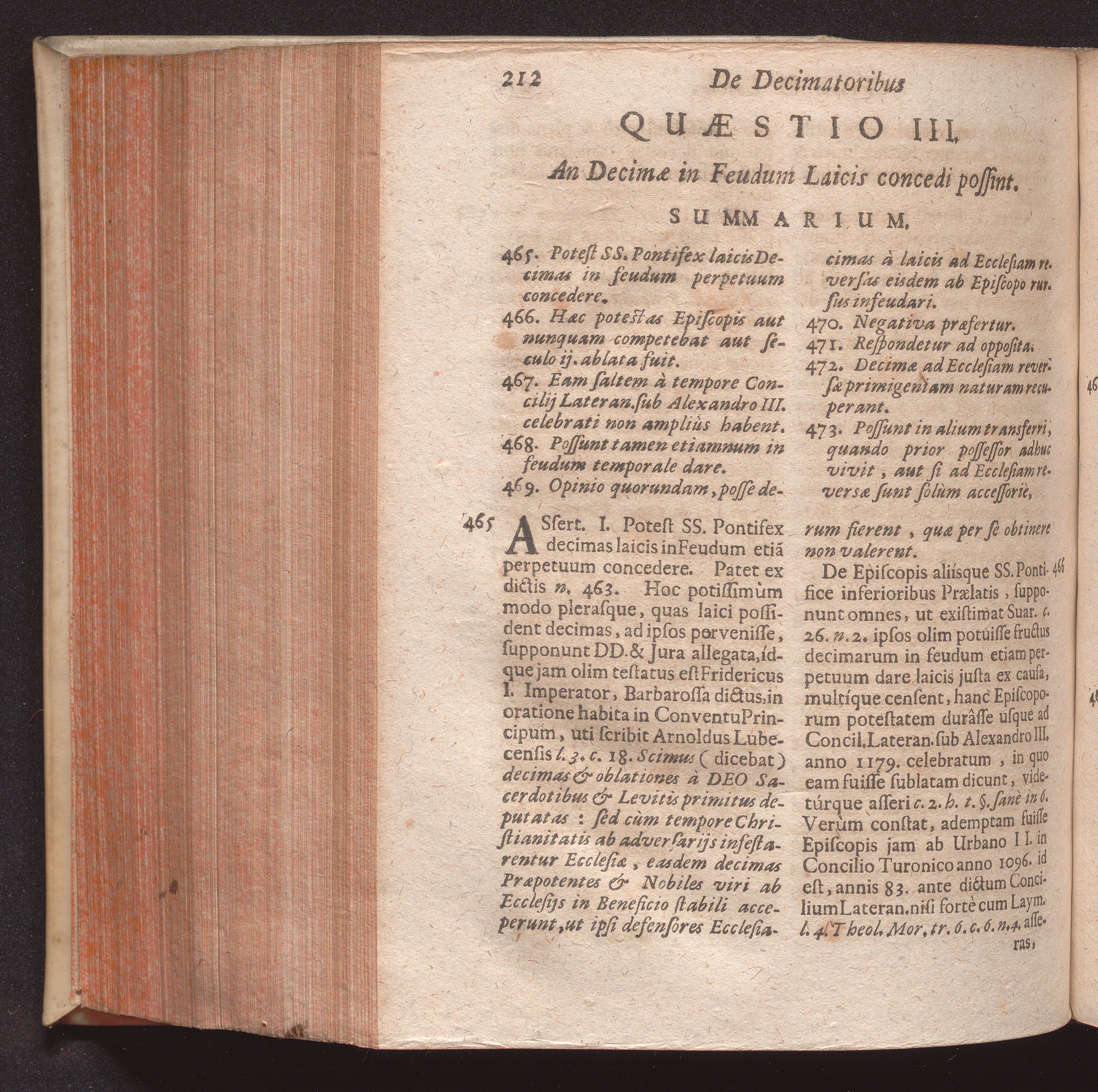 Quæstiones Canonicæ De Decimis : Quibus universum Jus decimandi, quà Ecclesijs, quà Laicis competens, Et Immunitas ab ijsdem solvendis, ex Jure cùm communi, tum consuetudinario, tum etiam Bavariæ Statutis, & Concordatis explicatur ; Accessit geminus Index, unus Quæstionum, alter Rerum & Verborum / Auctore P. Melchiore Friderich Societatis Jesu Sacerdote, & SS. Canonum in Universitate Ingolstadiana Professore