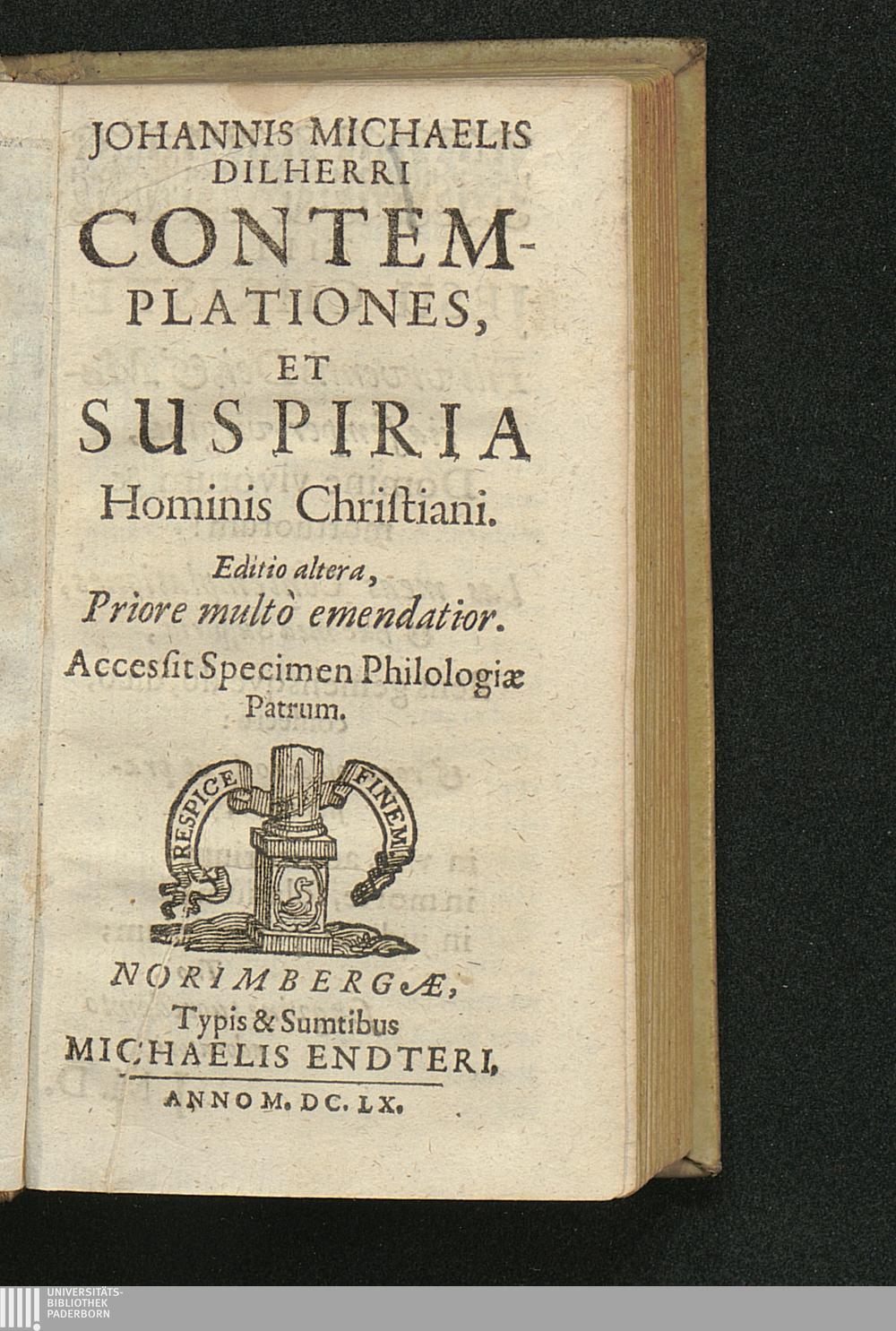Johannis Michaelis Dilherri Contemplationes, Et Suspiria Hominis Christiani