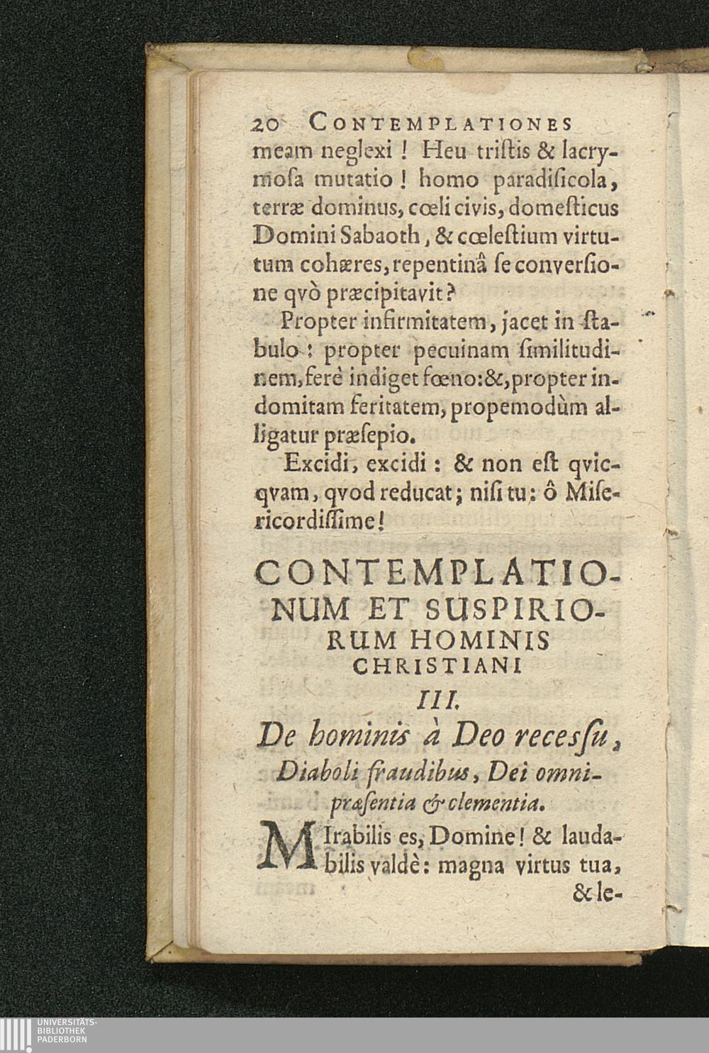 III. De hominis à Deo recessu, Diaboli fraudibus; Dei omnipraesentia, & clementi[...]