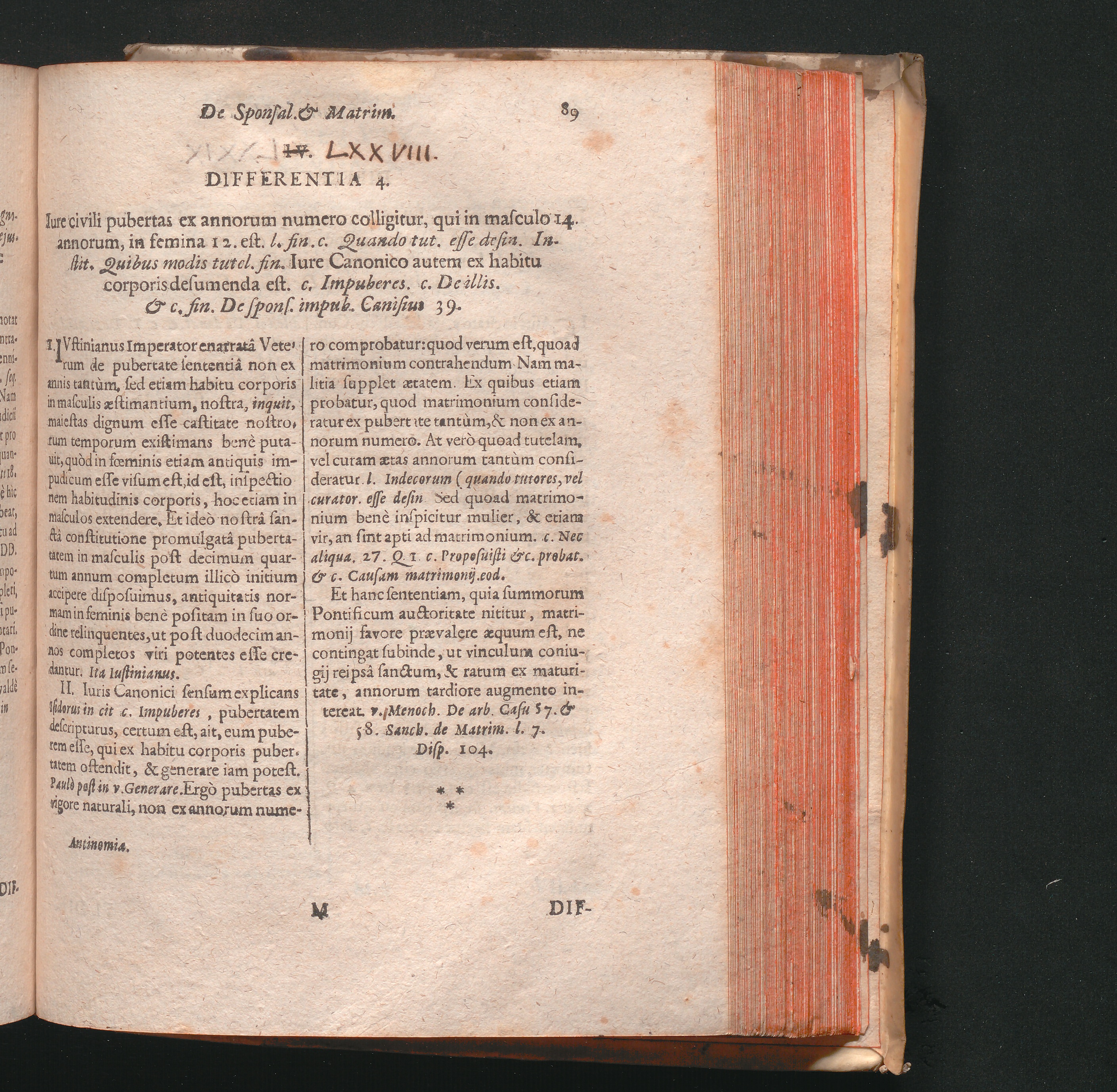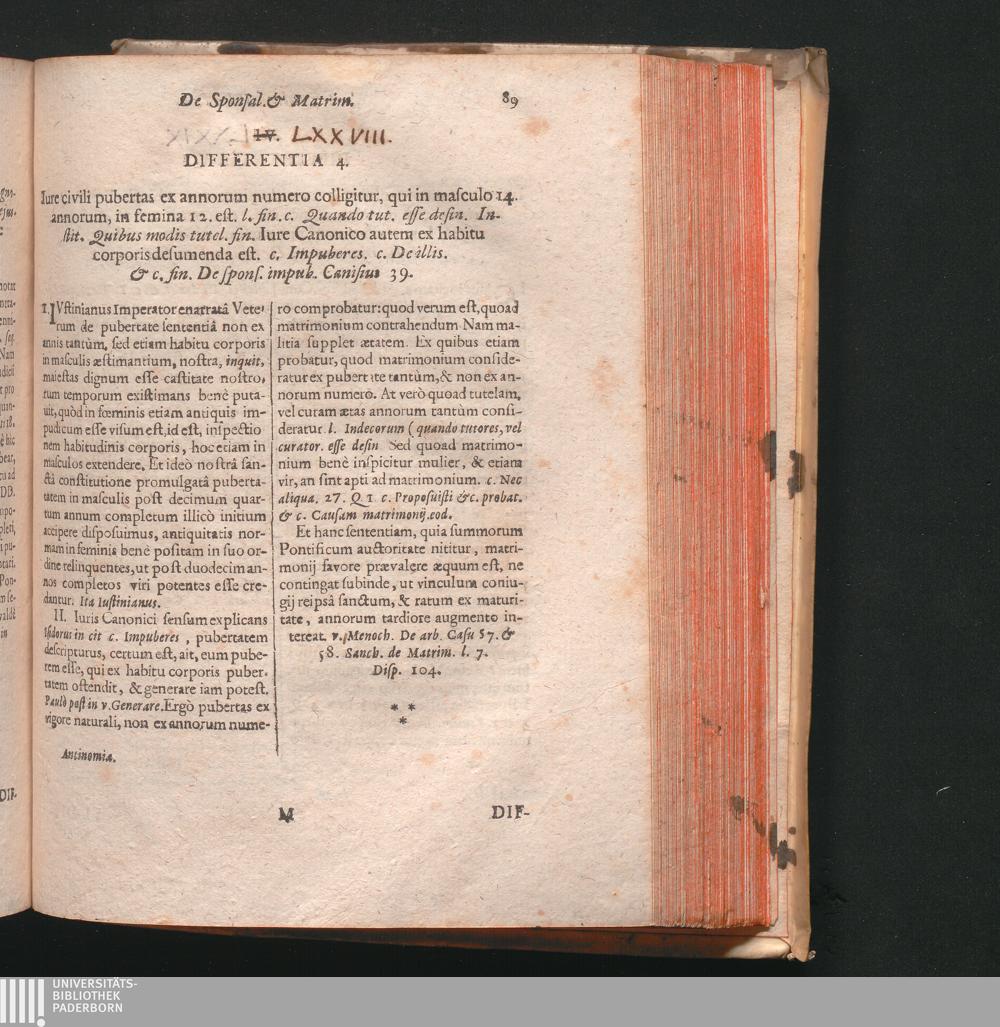 IV. [i.e. LXXVIII.] Differentia 4. Iure civili pubertas ex annorum numero colligitur,[...]