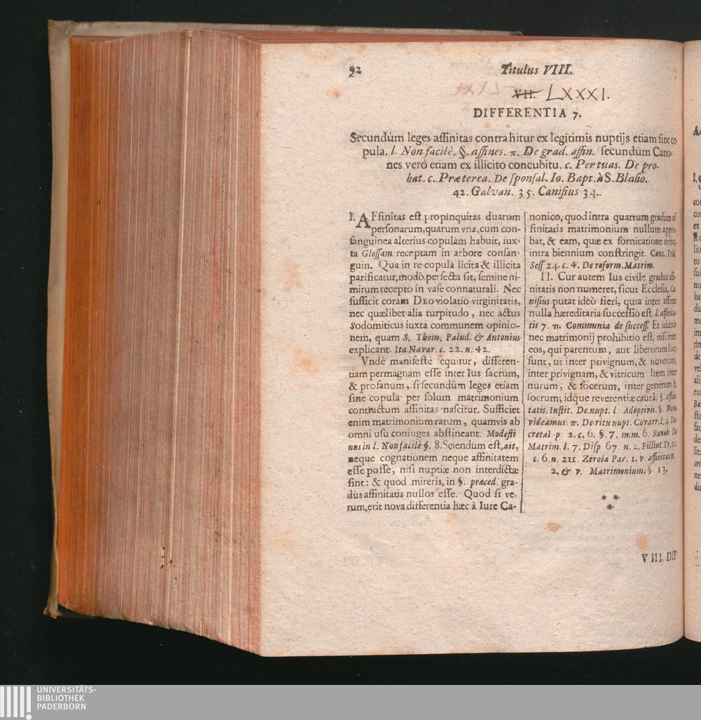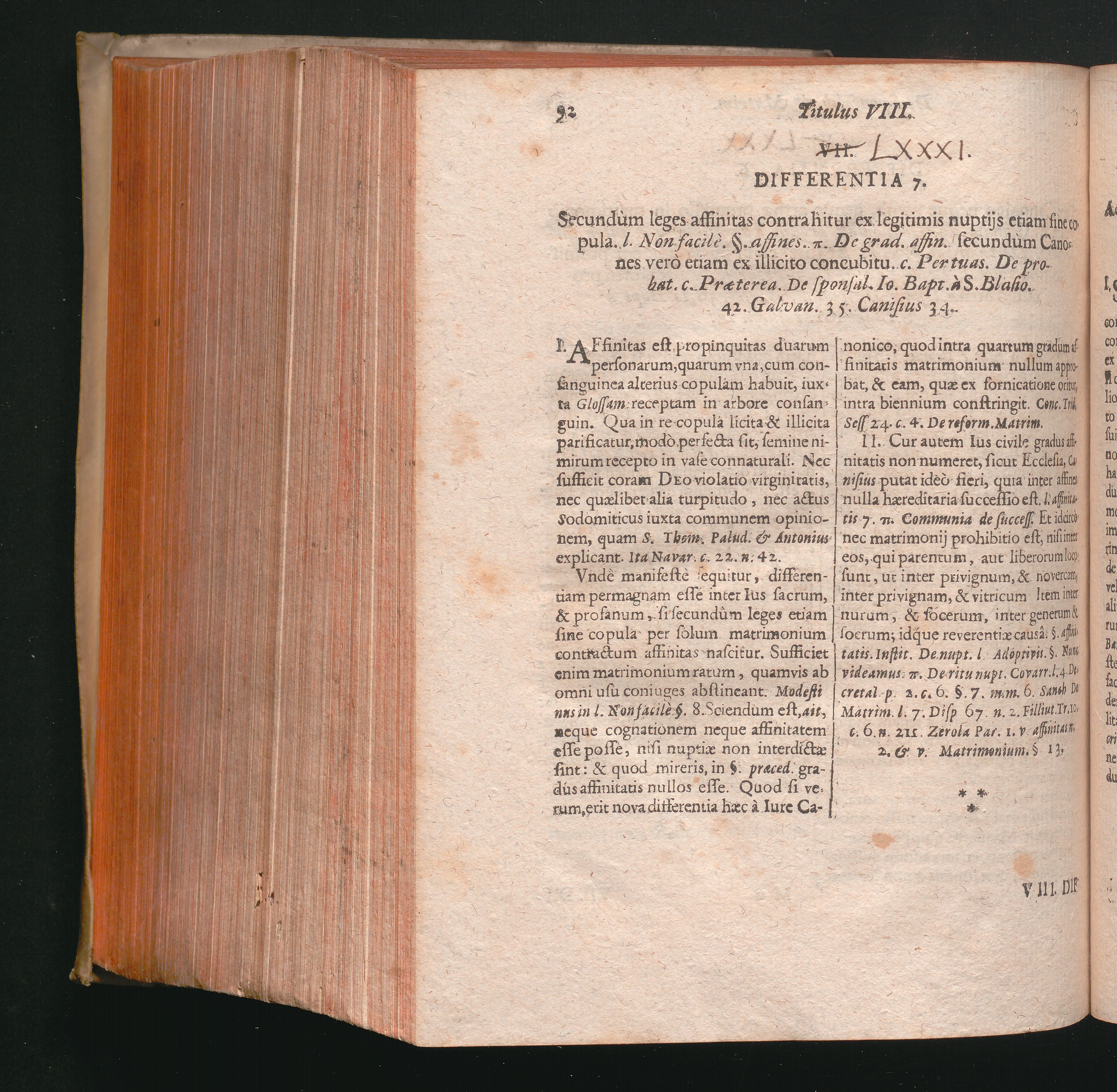 LXXXI. Differentia 7. Secundùm leges affinitas contrahitur ex legitimis nuptijs etiam[...]