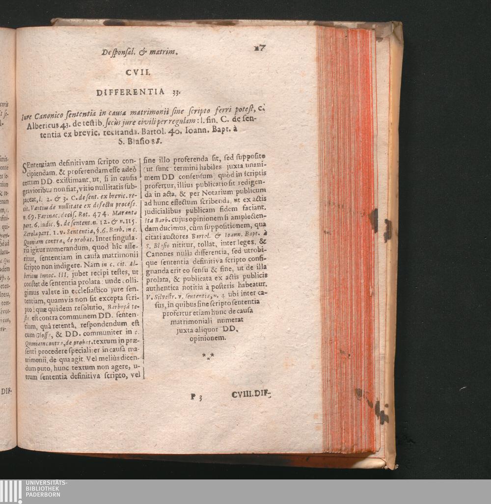 CVII. Differentia 33. Iure Canonico sententia in causa matrimonii sine scripto ferri[...]