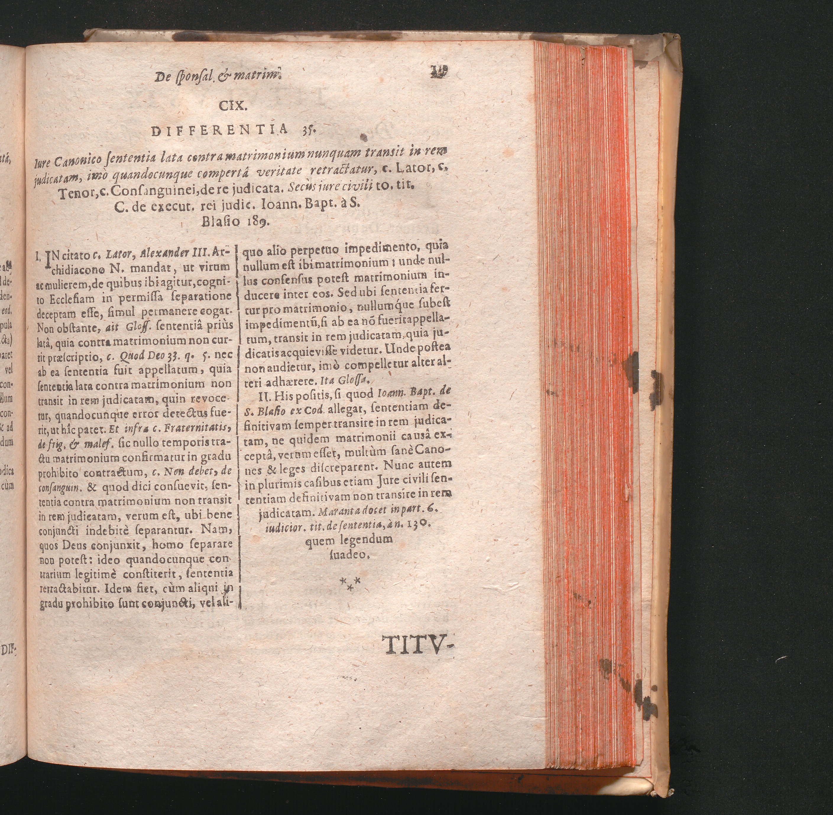 CIX. Differentia 35. Iure Canonico sententia lata contra matrimonium nunquam trnasit[...]