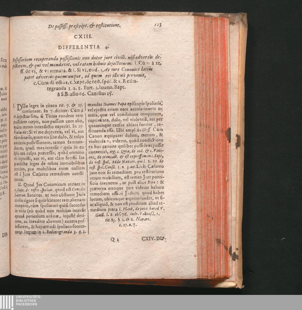 CXIII. Differentia 4. Possessorium recuperandæ posseßionis non datur jure civili,[...]