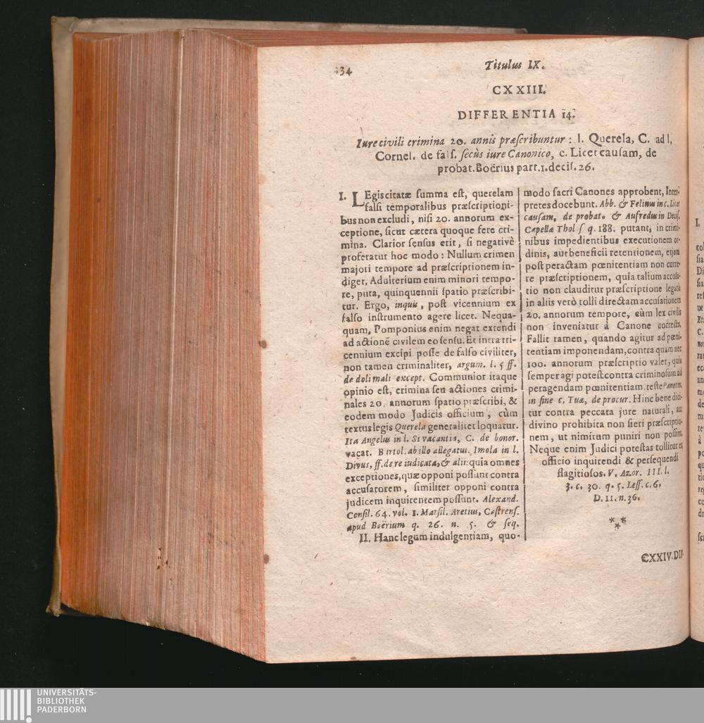 CXXIII. Differentia 14. Iure civili crimina 20. annis præscribuntur: