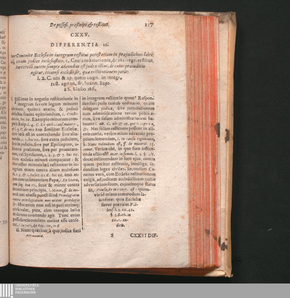 CXXV. Differentia 16. Iure Canonico Ecclesia integrum restitui potest etiam in præjudicium[...]