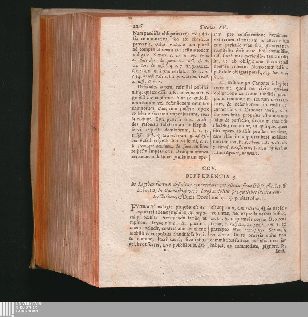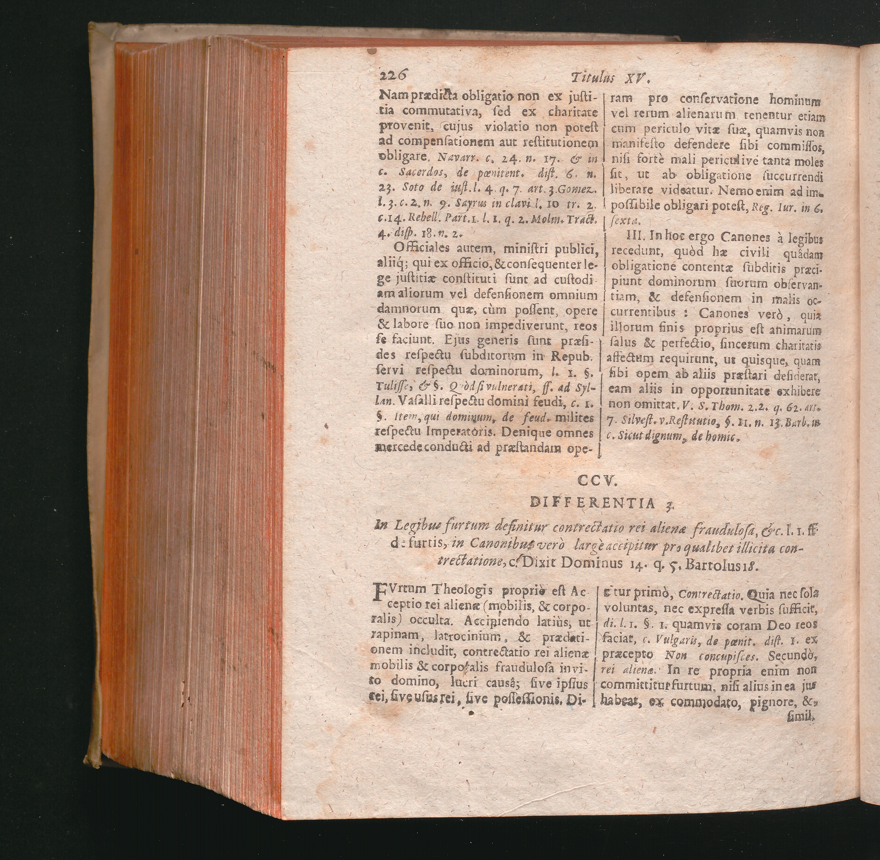 CCV. Differentia 3. In Legibus furtum definitur contrectatio rei alienæ fraudulosa,[...]