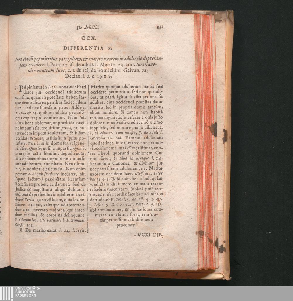CCX. Differentia 8. Iure civili permittitur patri filiam, & marito uxorem in adulterio[...]