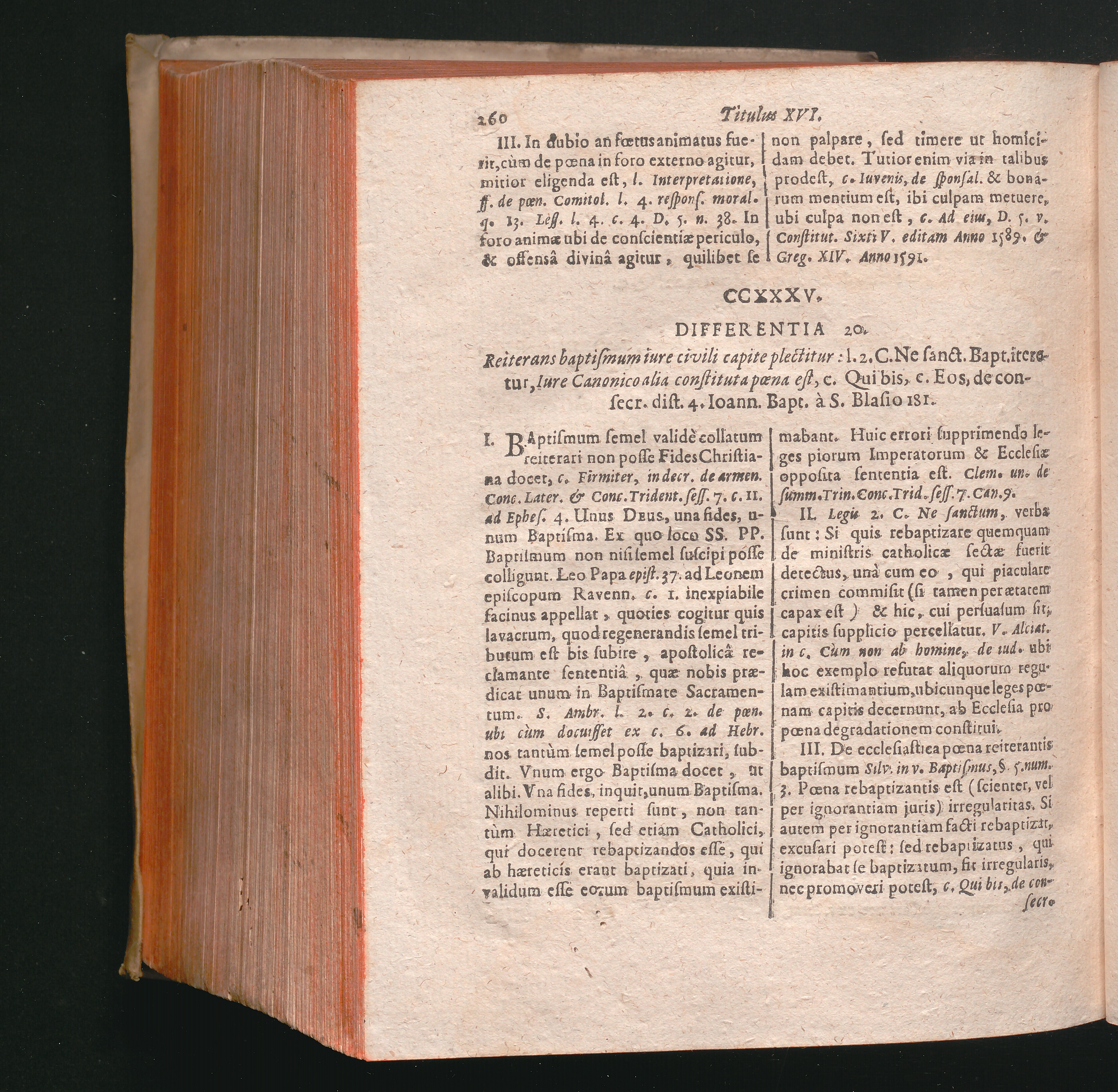 CCXXXV. Differentia 20. Reiterans baptismum iure civili capite plectitur:
