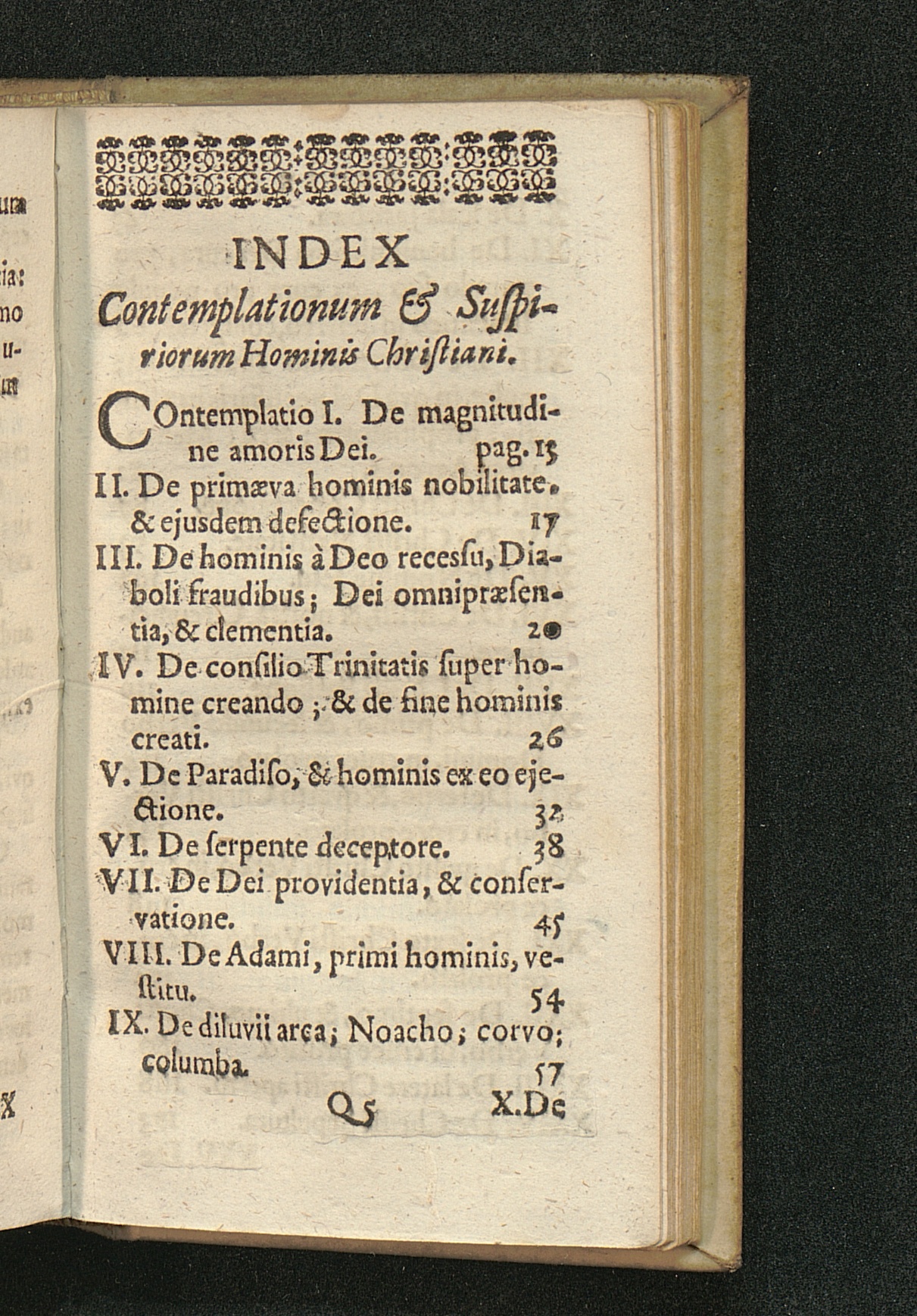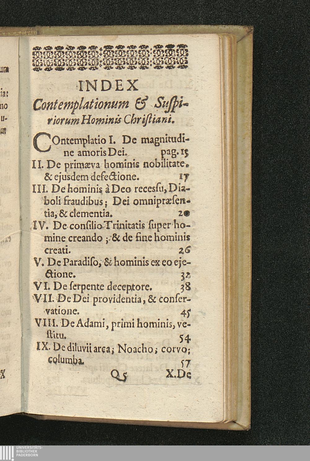 Index Contemplationum & Suspiriorum Hominis Christiani.