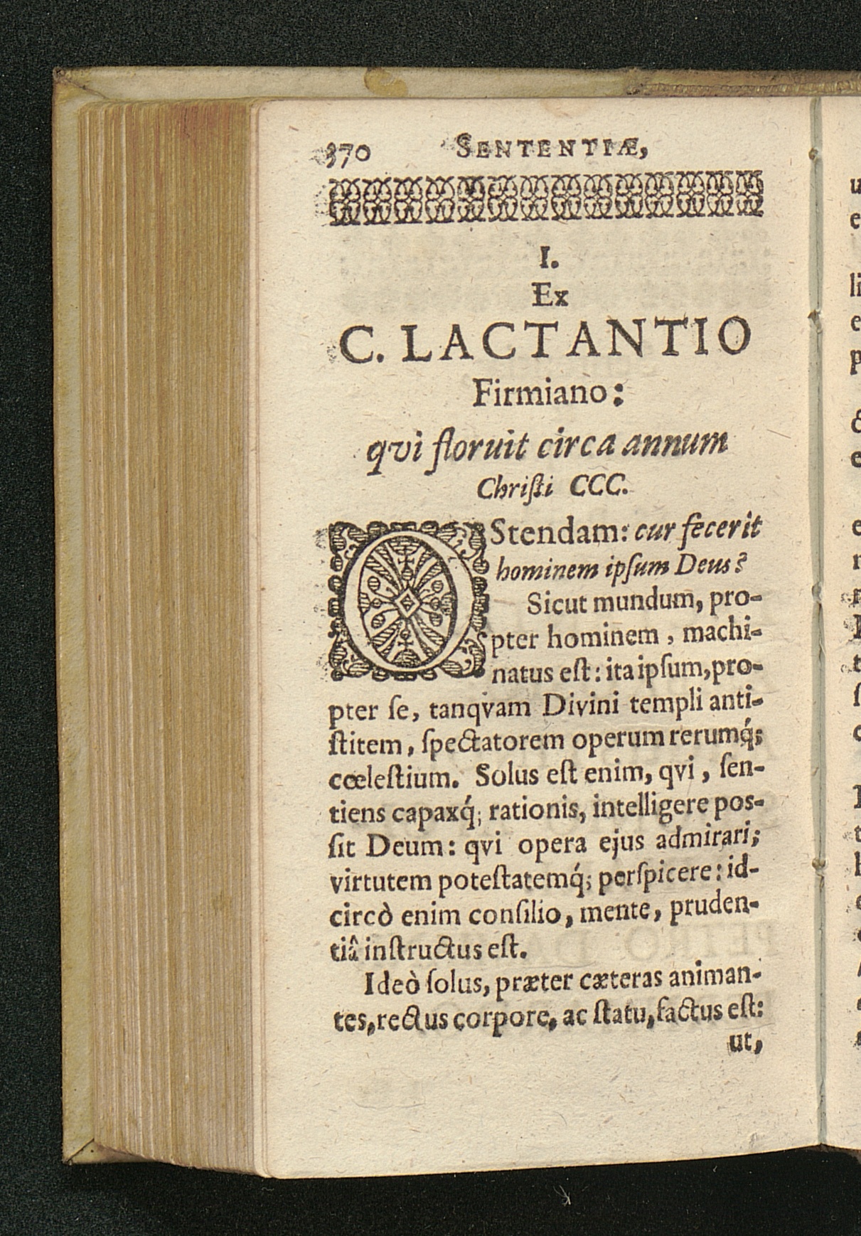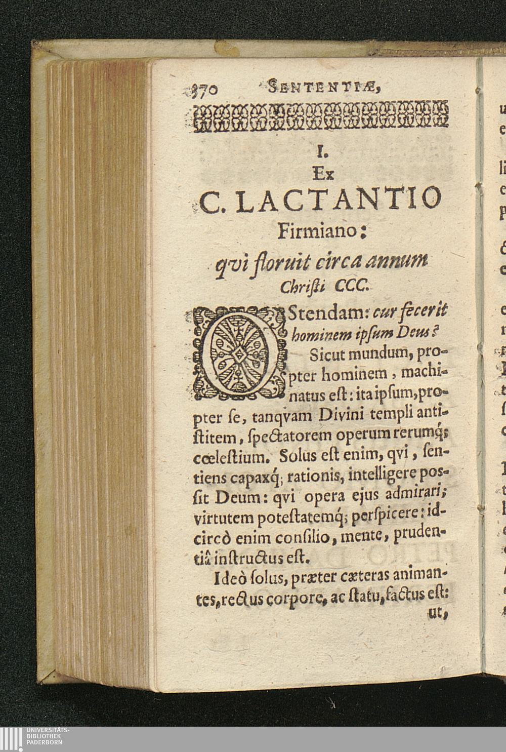 I. Ex C. Lactantio Firmiano: qvi floruit circa annum Christi CCC.
