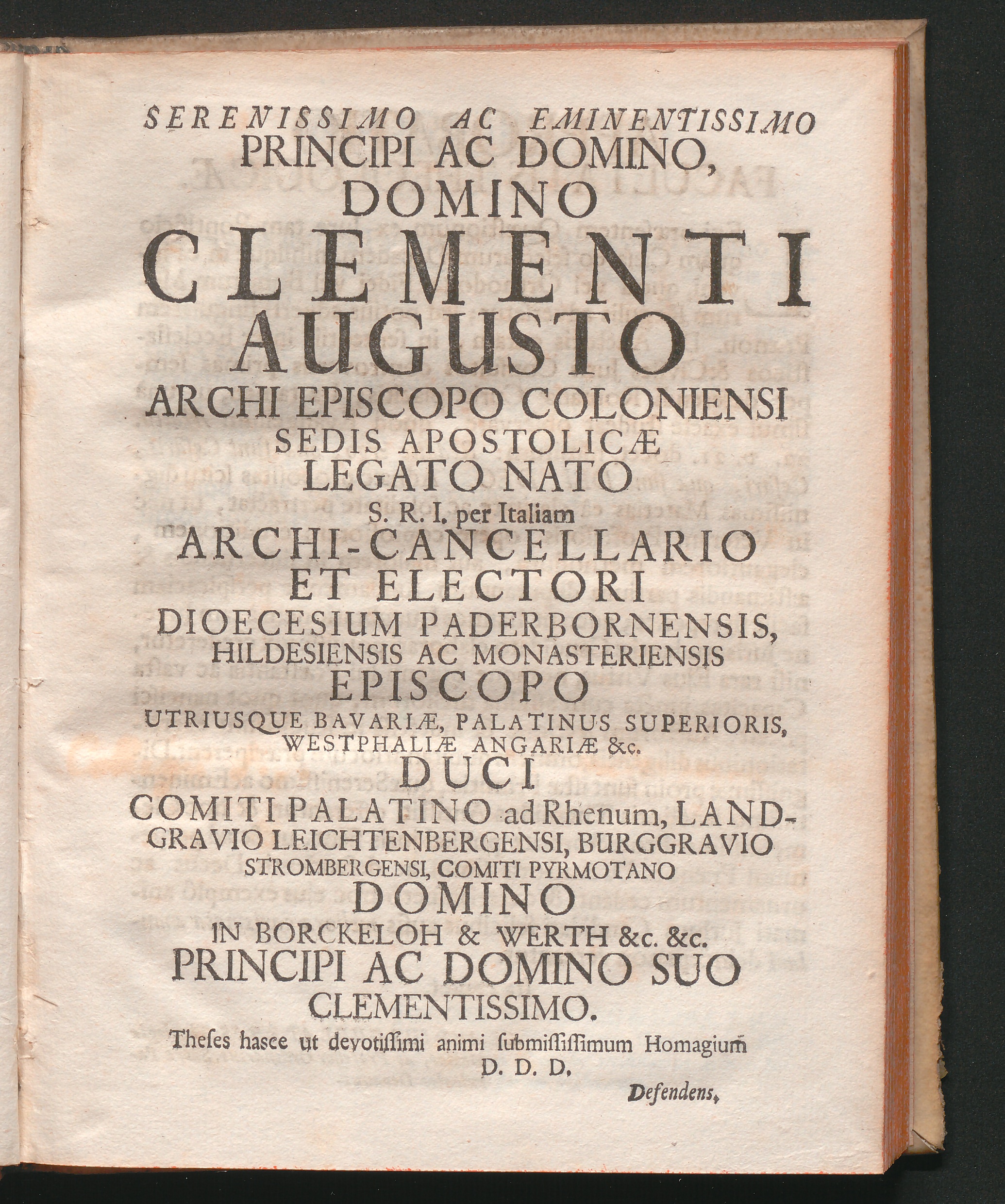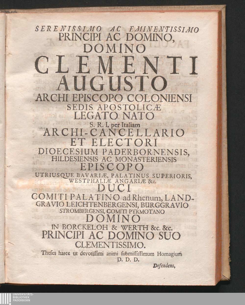 Serenissimo Ac Emendatissimo Principi Ac Domino, Domino Clementi Augusto ArchiEpiscopo[...]