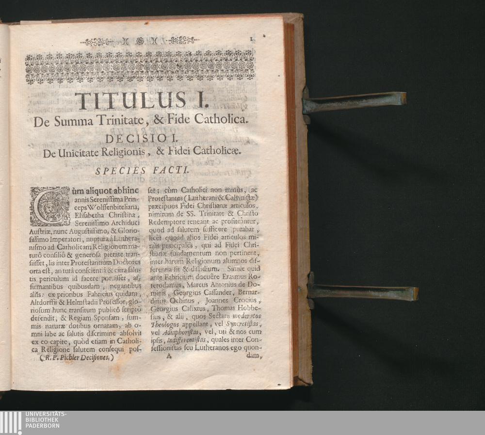 Decisio I. De Unicate Religionis, & Fidei Catholicæ.