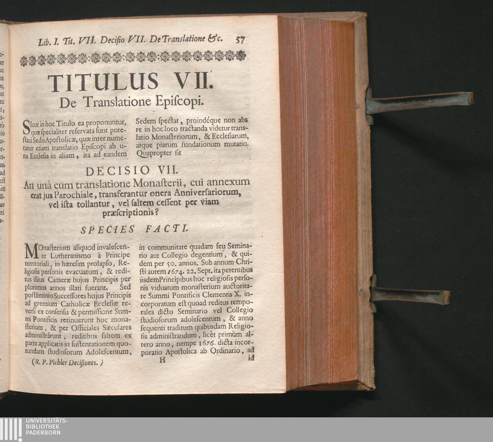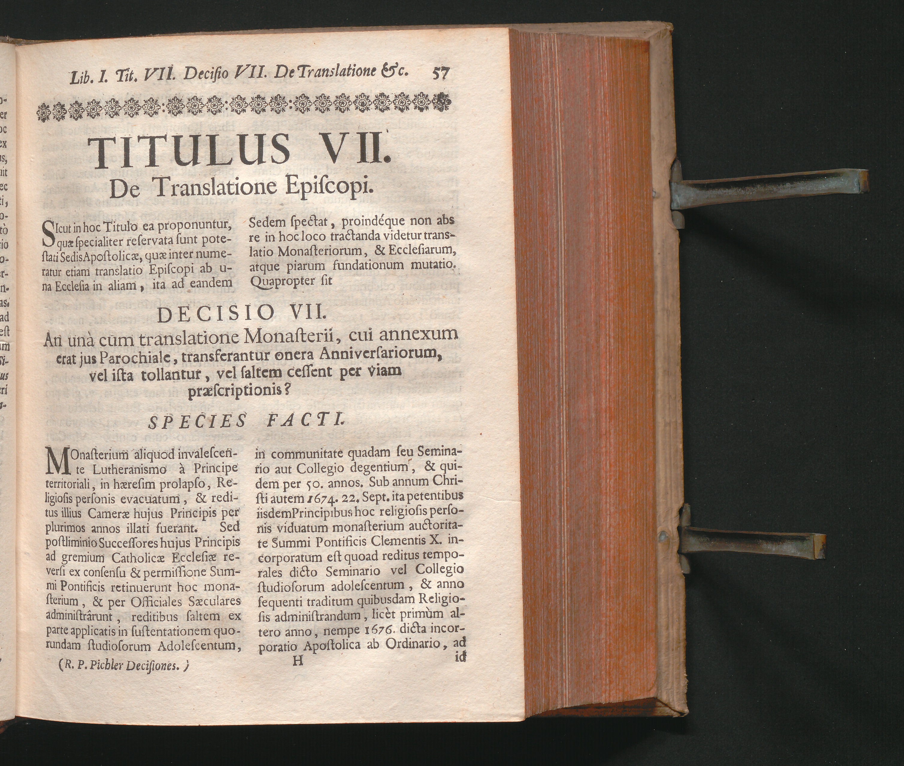 Decisio VII. De translatione Monasterii, cui annexum erat jus Parochiale in Semi[...]