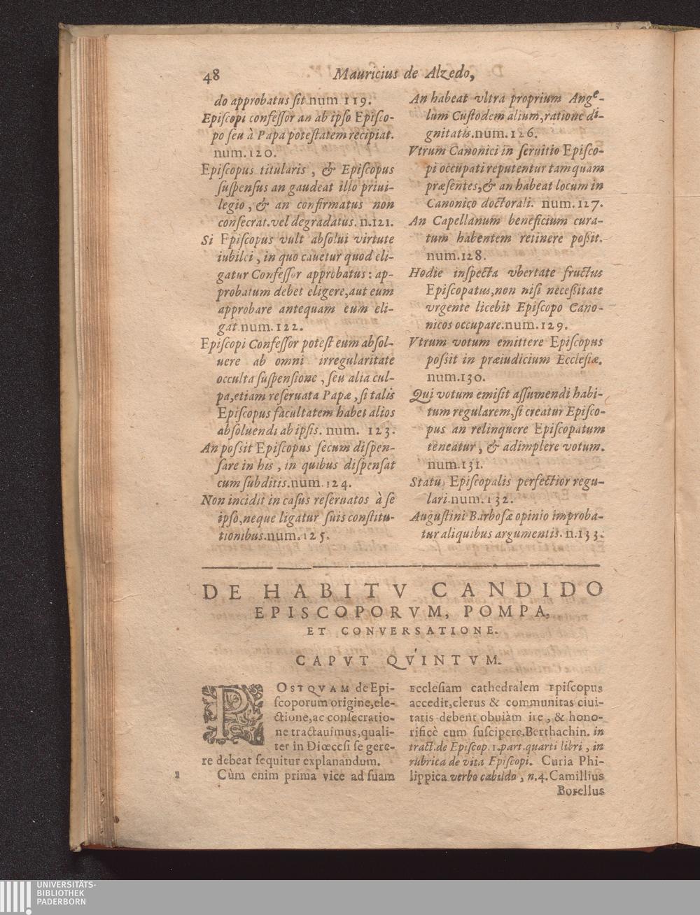 De Præcellentia Episcopalis Dignitatis : De'qve Episcopi Fvnctionibvs, Ac Potestate In Credita Sibi Ecclesia regenda, visitanda, administranda ; Necnon de Generalis Vicarij autoritate ac muneribus ; Opus Bipartitvm ... / Autore D. D. Mavricio De Alzedo Cantabro ex valle Sopuertæ Iuris Canonici Doctore, Prothonotario ac Iudice Apostolico, & in supremo Castellæ Senatu causarum patrono