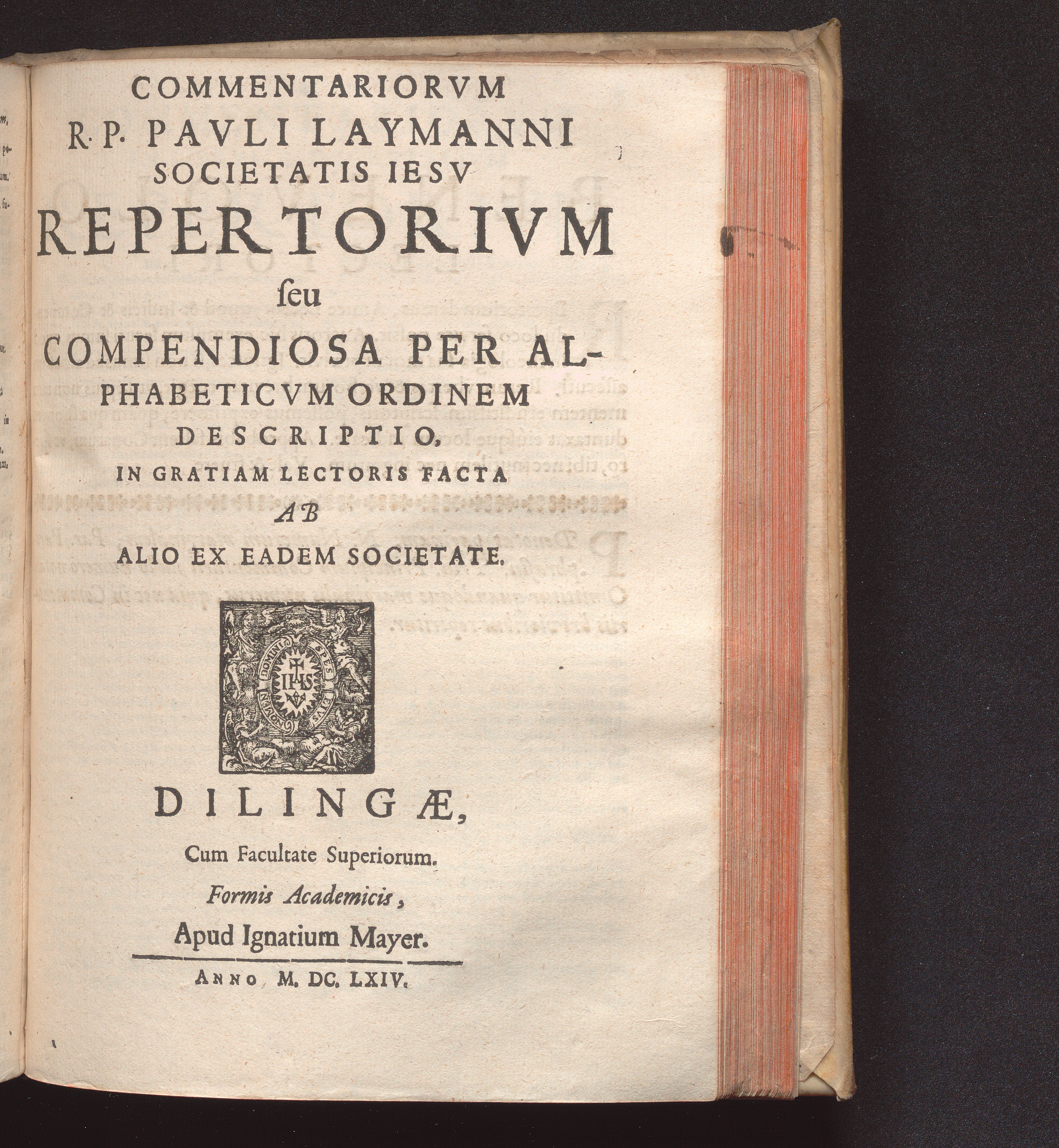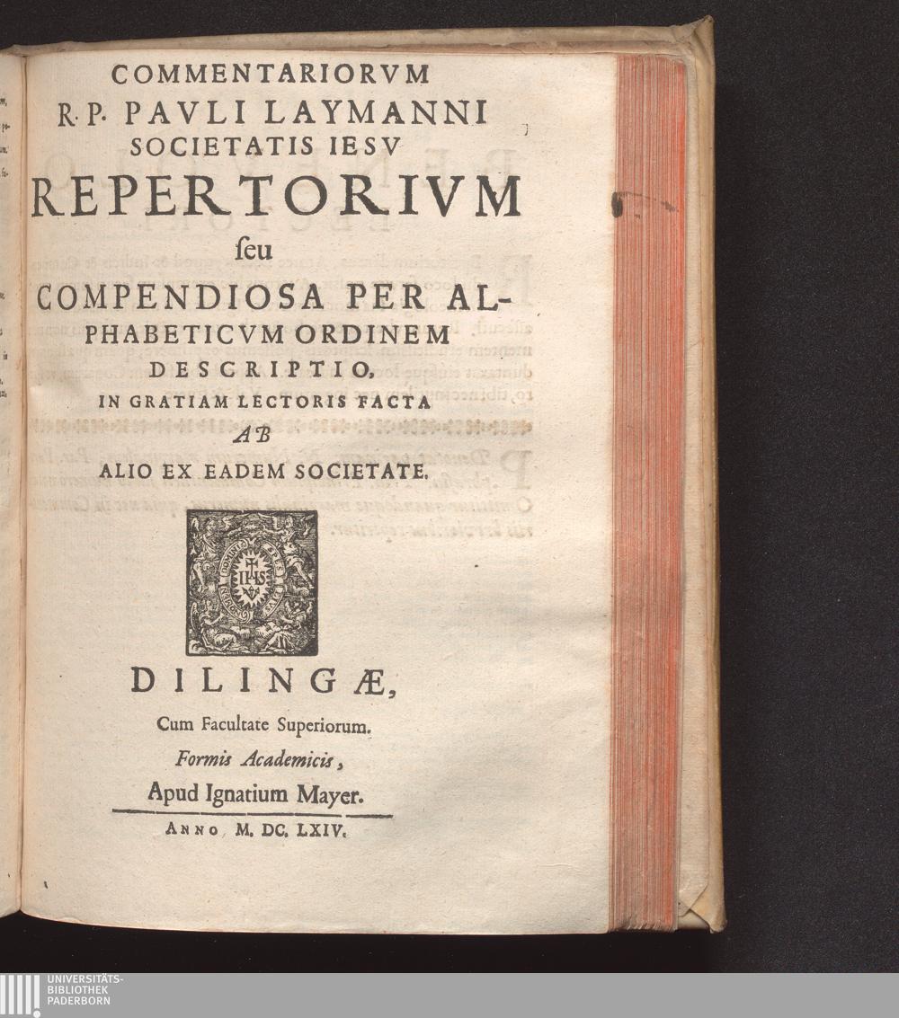 Commentariorvm R.P. Pavli Laymanni Societatis Iesv Repertorivm seu Compendiosa Per Alphabeticvm Ordinem Descriptio : In Gratiam Lectoris Facta Ab Alio Ex Eadem Societate