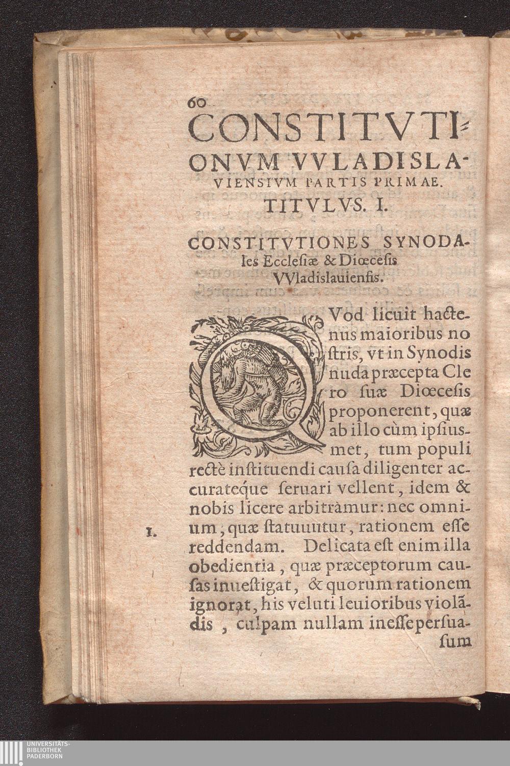 Consti=||tvtiones In Di-||oecesana Synodo Vvla-||dislaviensi : Cum Indice verborum & rerum locuplentissimo / Praesidente Reverendissimo In Christo Patre atque Domino D. Stanislao Carncouio, Episcopo VVladislauensi editæ ; Sub Pontificatu S.D.N. Pii Papae V. ad Sacrosanctæ Sedis Apostolicæ, & vniversalis Ecclesiæ Romanæ gubernacula sedentis