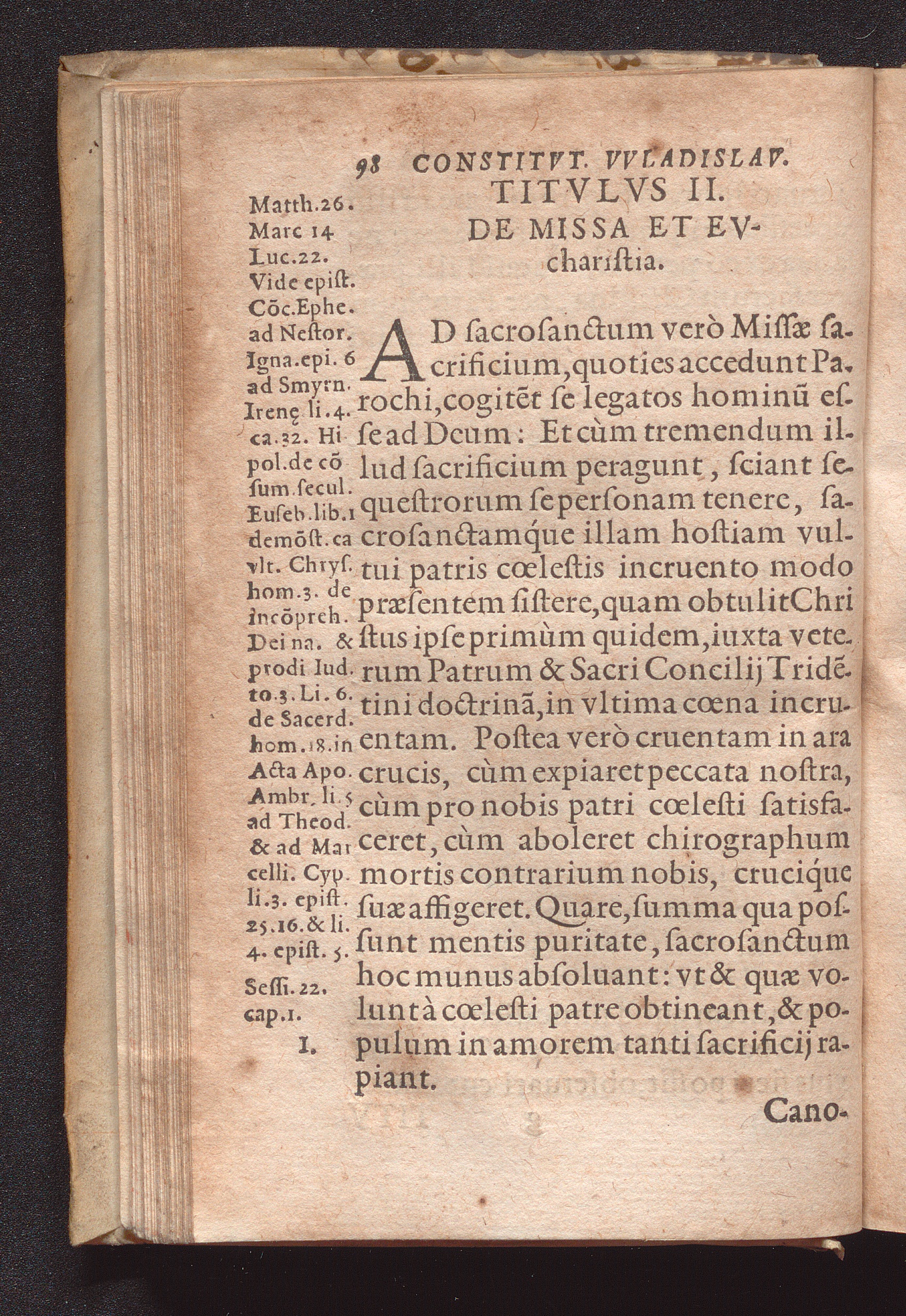 Consti=||tvtiones In Di-||oecesana Synodo Vvla-||dislaviensi : Cum Indice verborum & rerum locuplentissimo / Praesidente Reverendissimo In Christo Patre atque Domino D. Stanislao Carncouio, Episcopo VVladislauensi editæ ; Sub Pontificatu S.D.N. Pii Papae V. ad Sacrosanctæ Sedis Apostolicæ, & vniversalis Ecclesiæ Romanæ gubernacula sedentis