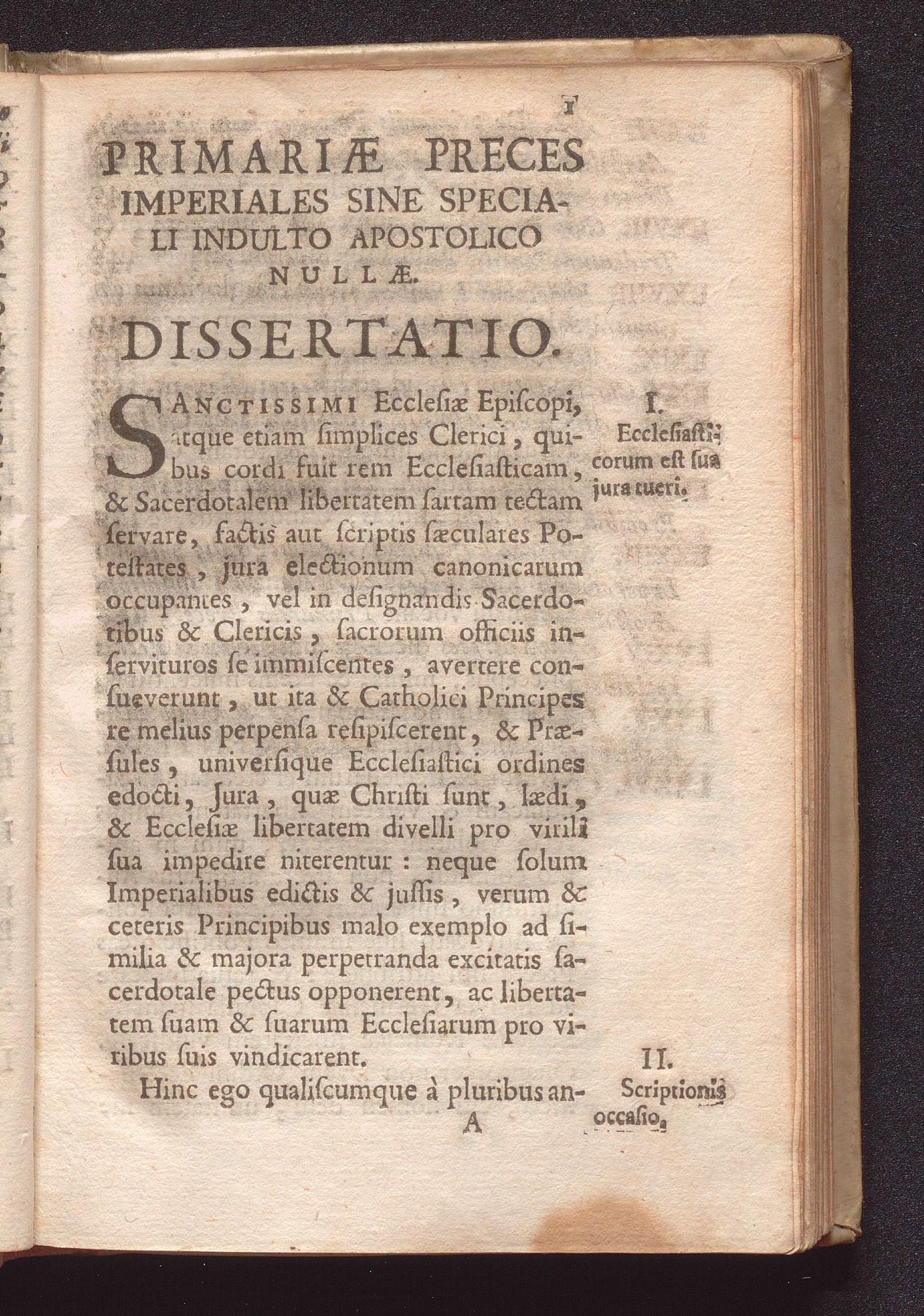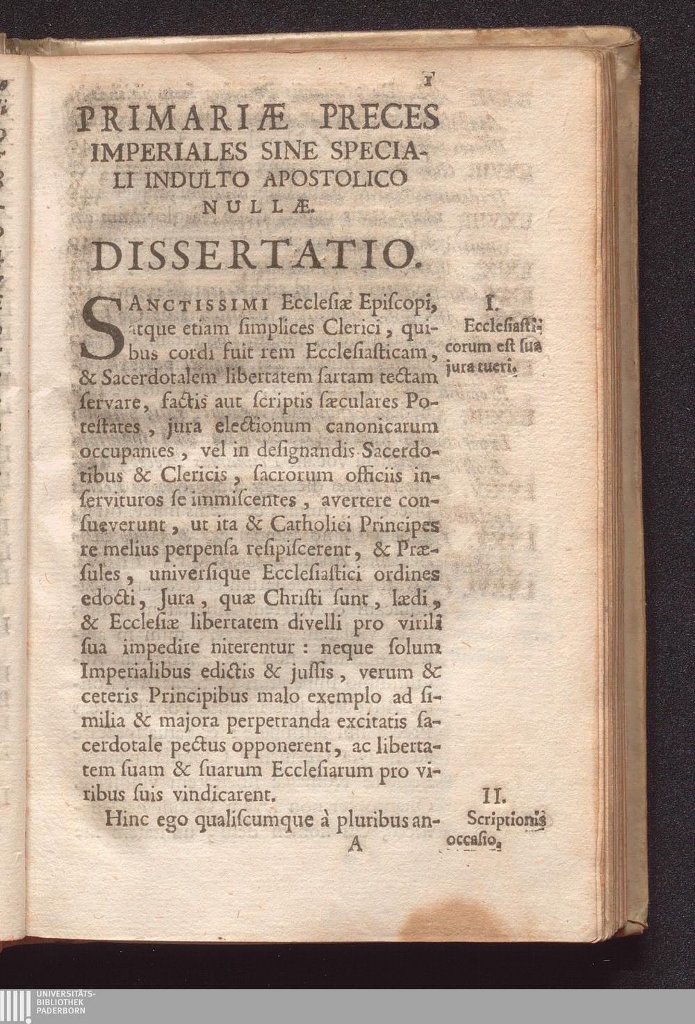 Conradi Oligenii J. C. Dissertatio De Primariis Precibus Imperialibus : Ubi argumentis ex Jure Canonico deductis, Concordatis inclytæ nationis Germanicæ, Pontificiis Diplomatibus, & perpetua consuetudineostenditur illas dirigi à Cæsarea Majestate non posse sine speciali indulto Summi Pontificis