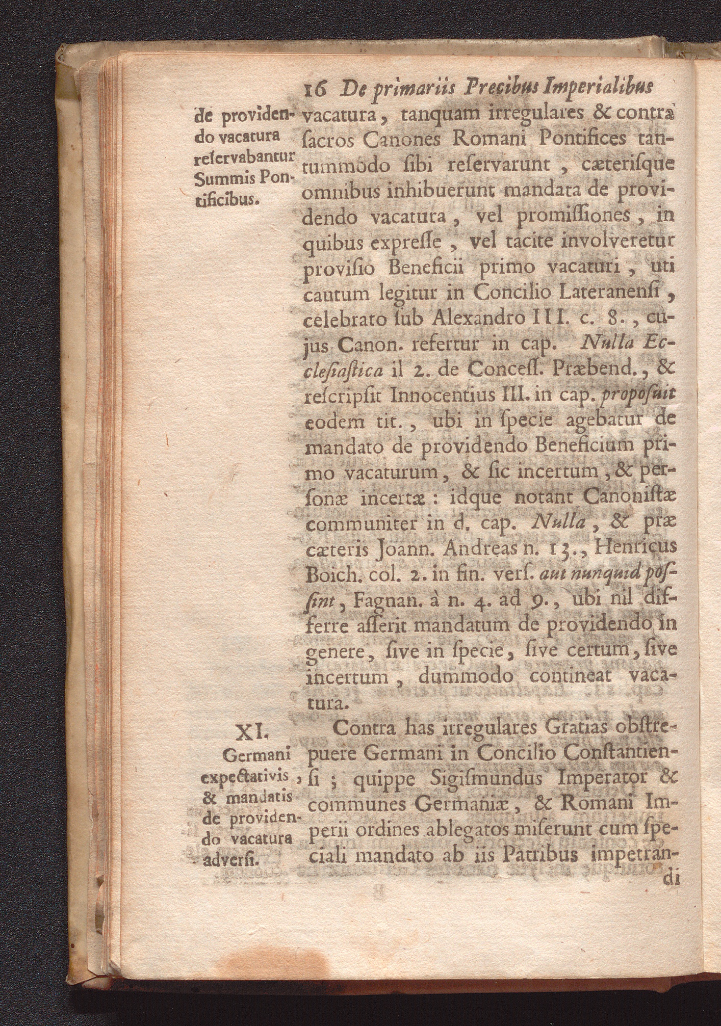Conradi Oligenii J. C. Dissertatio De Primariis Precibus Imperialibus : Ubi argumentis ex Jure Canonico deductis, Concordatis inclytæ nationis Germanicæ, Pontificiis Diplomatibus, & perpetua consuetudineostenditur illas dirigi à Cæsarea Majestate non posse sine speciali indulto Summi Pontificis